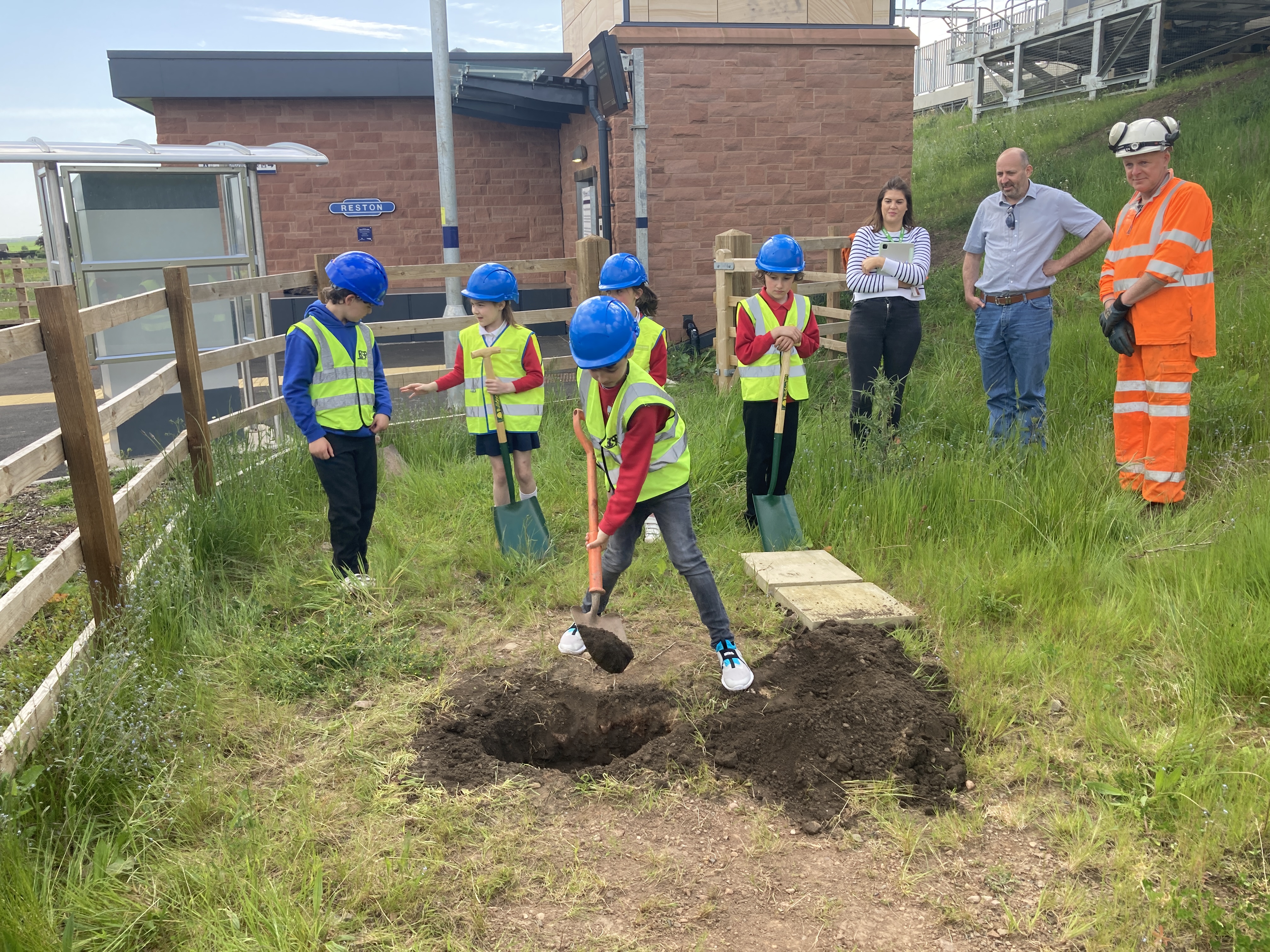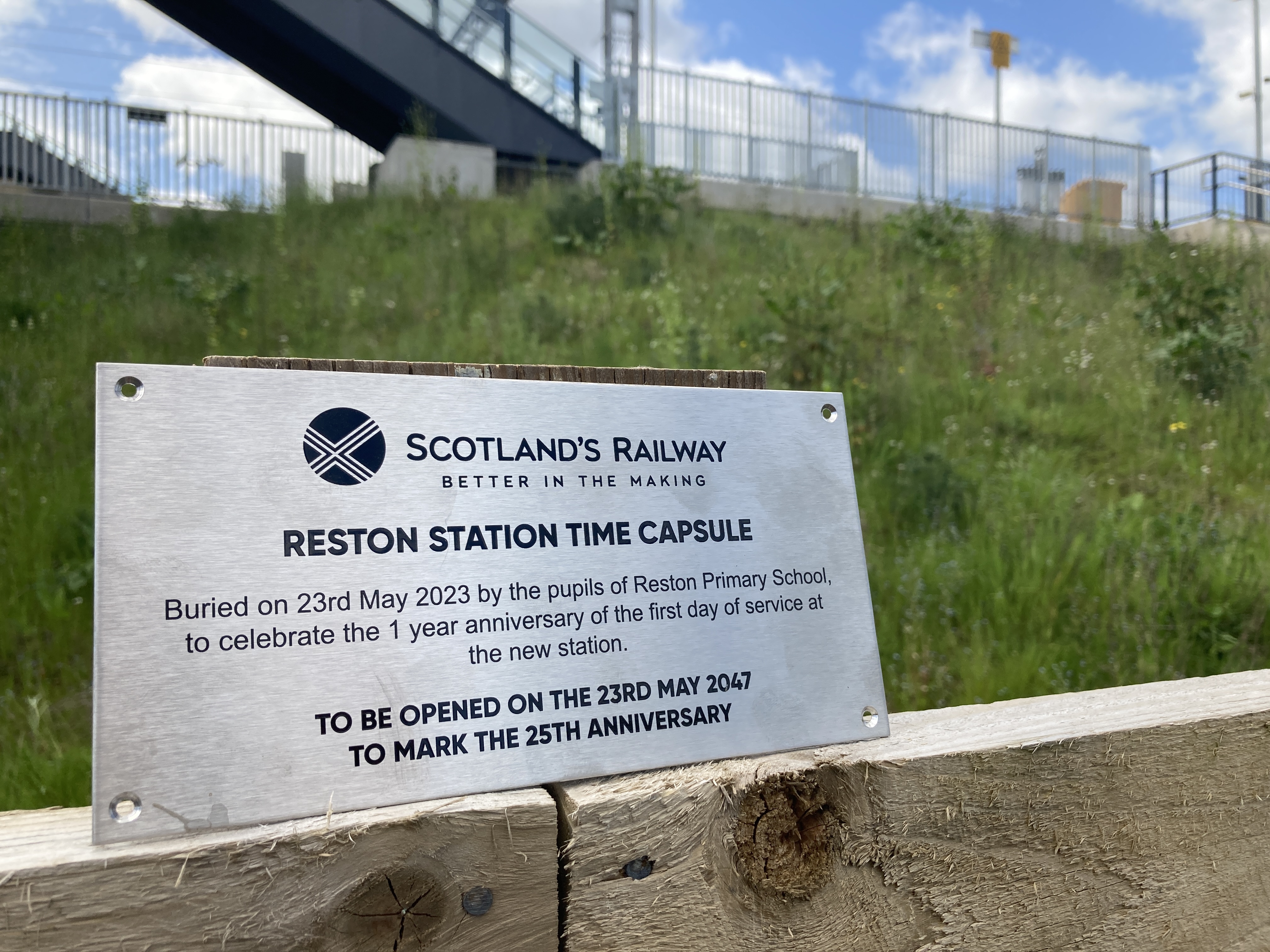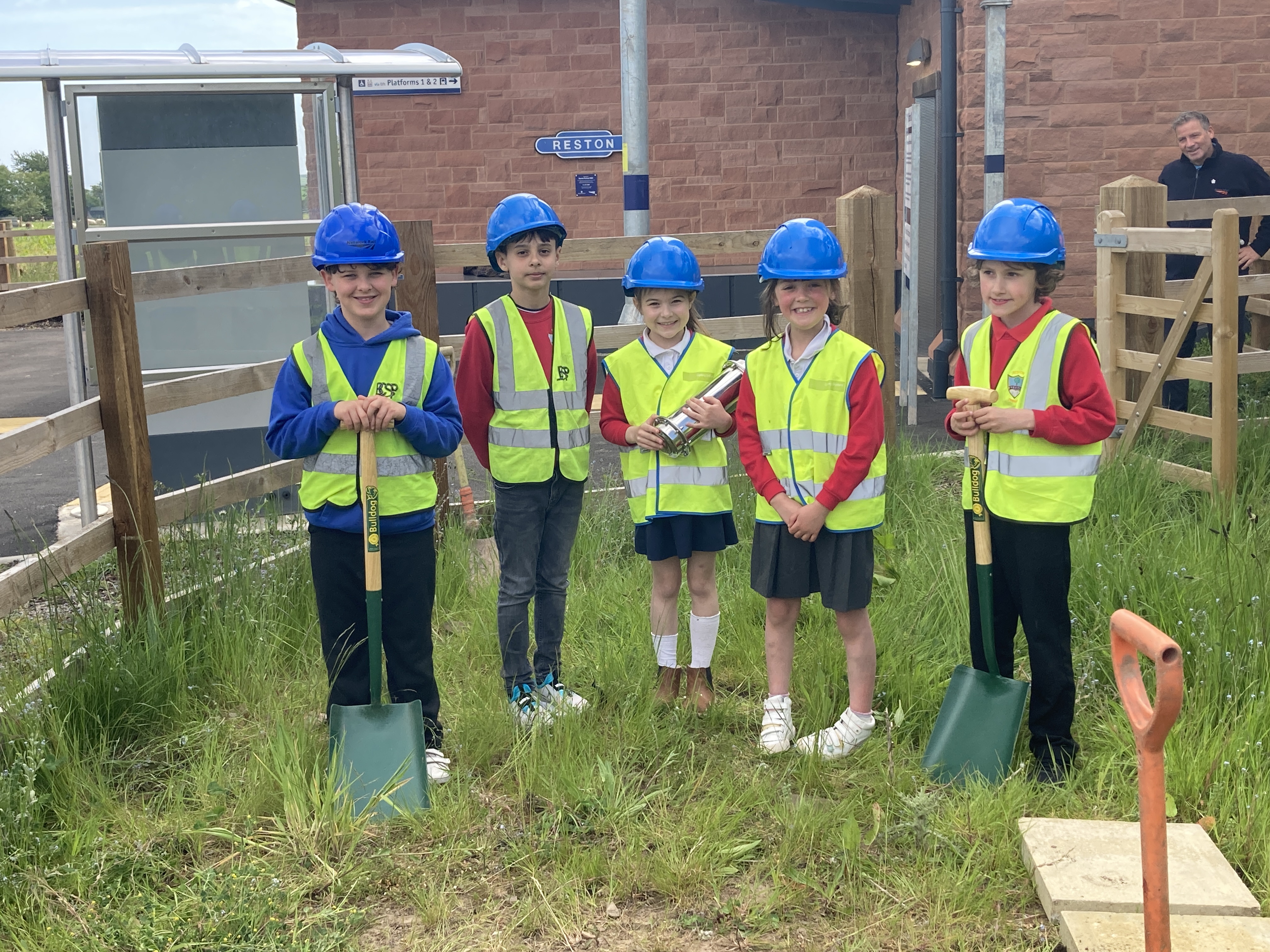 To celebrate one year of passenger services, pupils from Reston Primary school were invited to plant a time capsule at the station.