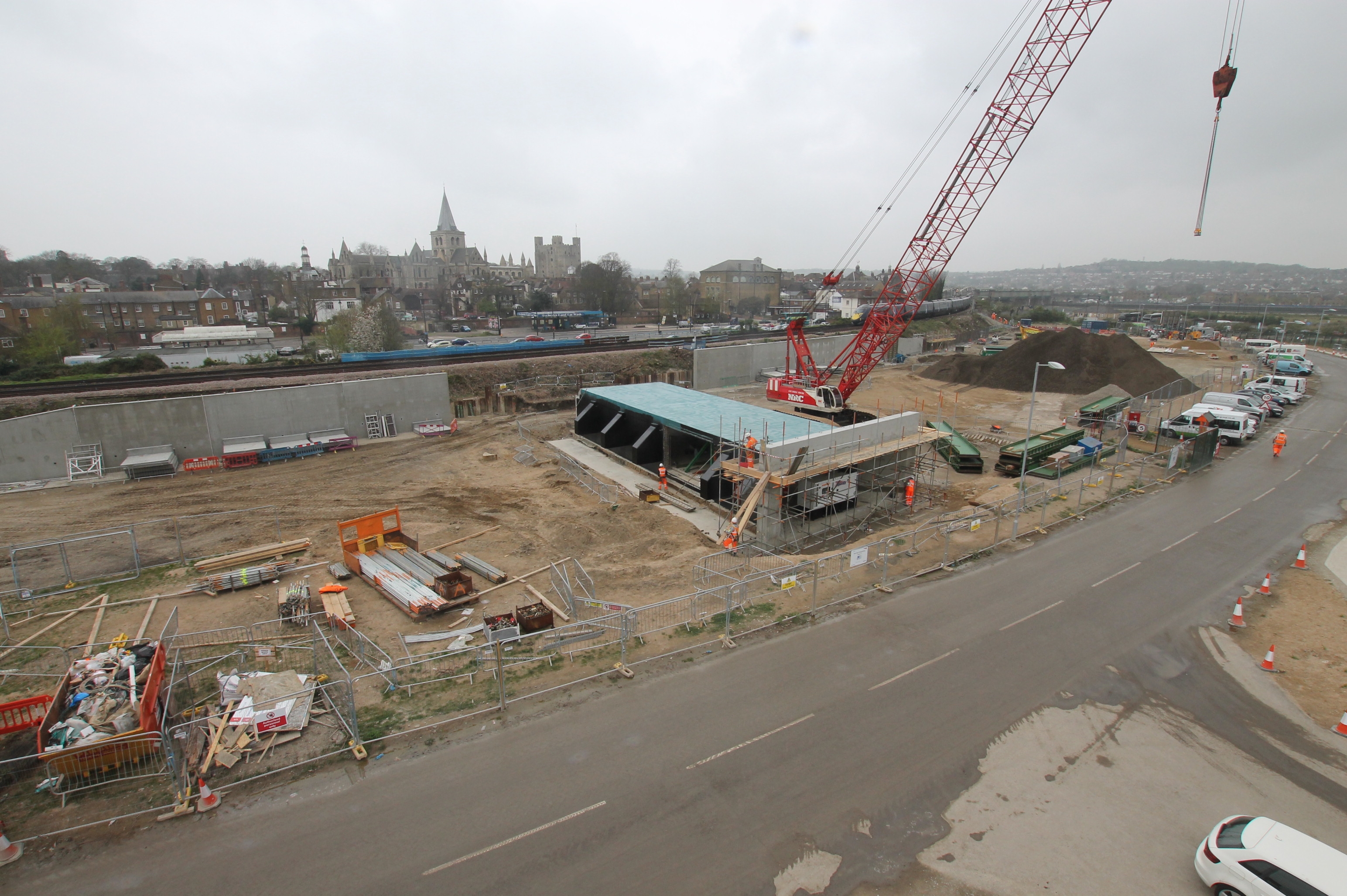The underpass will provide a public link between Corporation Street, Rochester and the river Medway, as well as access to the new station's platforms.