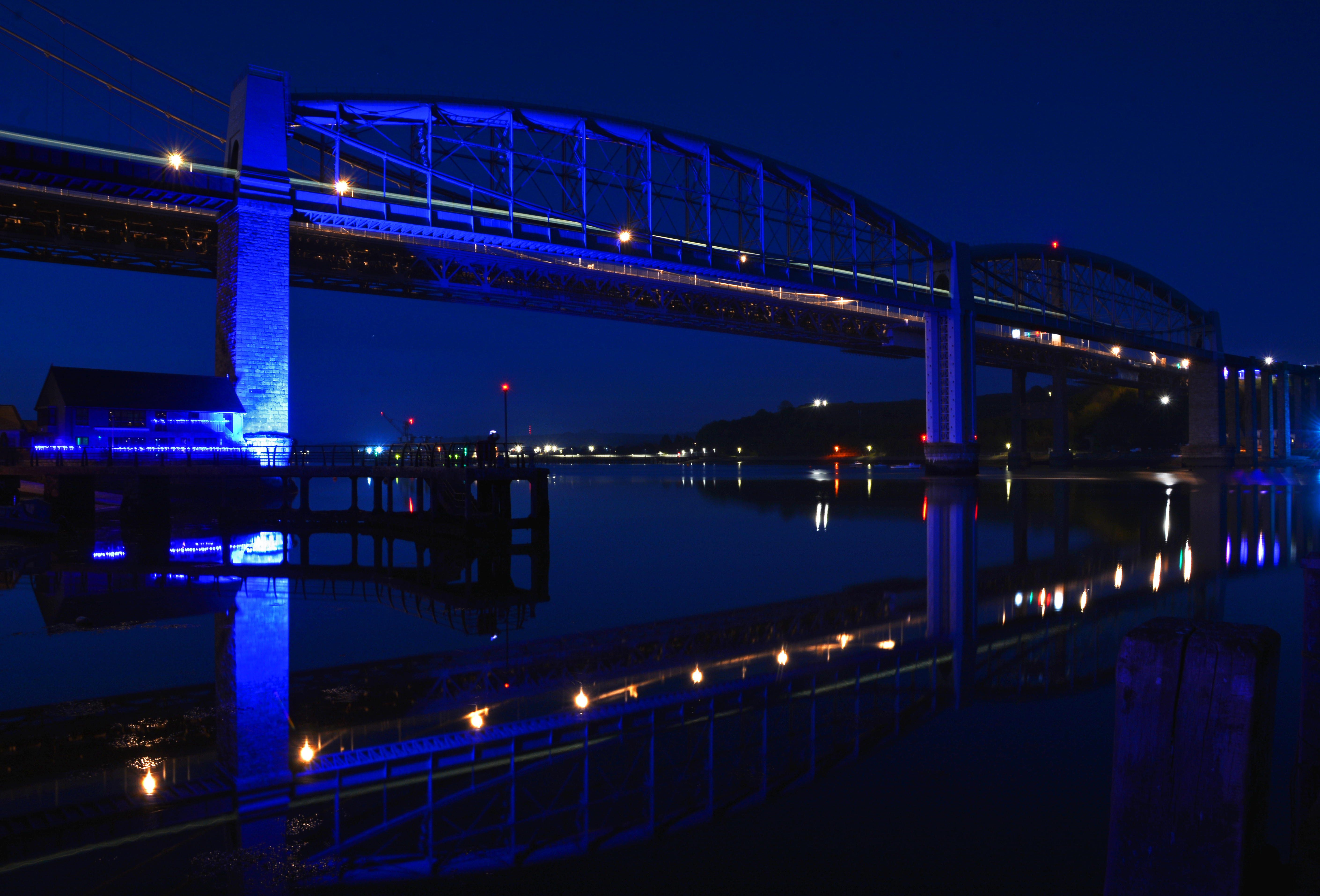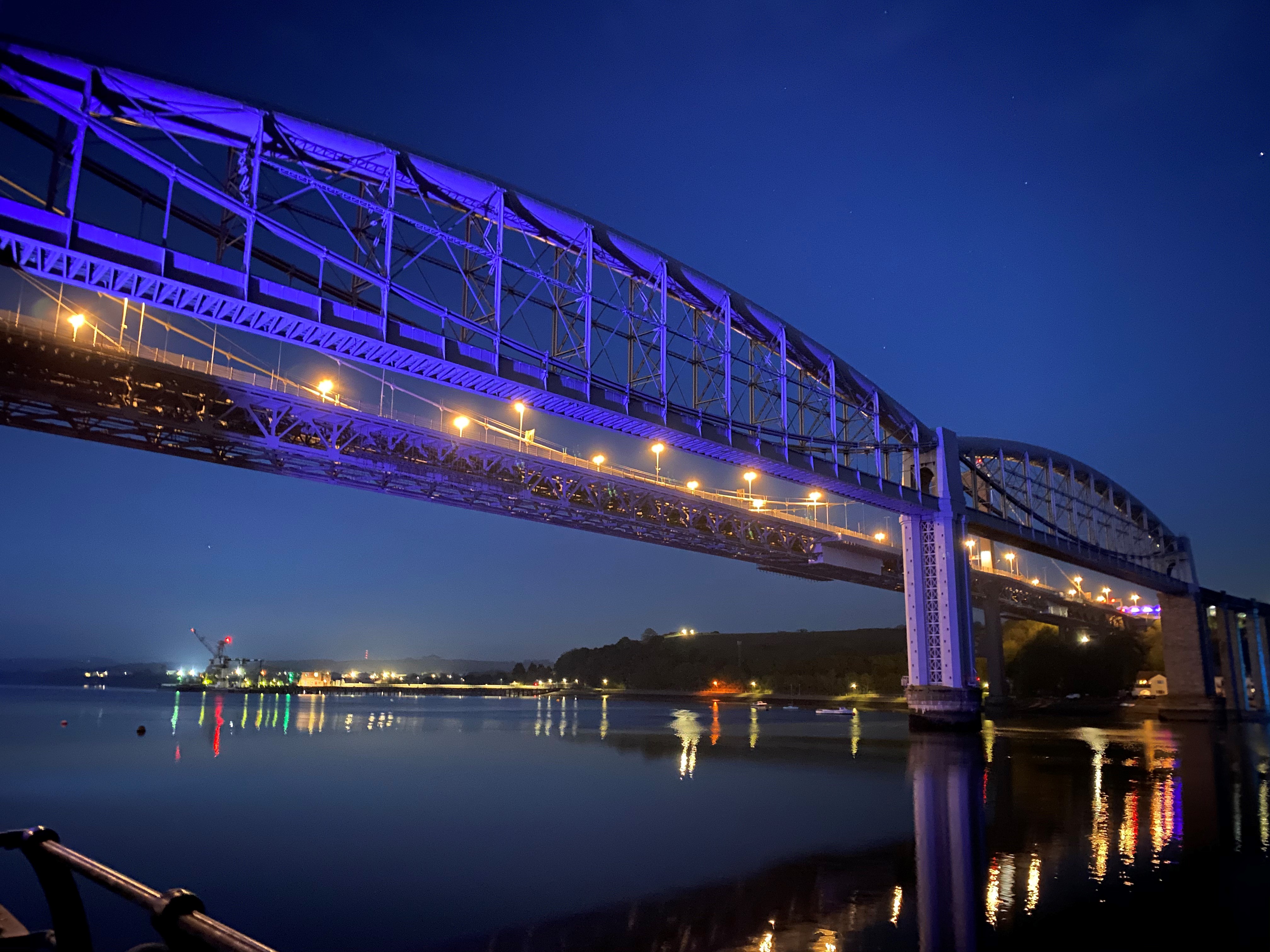 The Network Rail owned bridge, which carries the only railway line connecting the south west with the rest of the country, was lit up from both the Devon and Cornish side of the bridge.