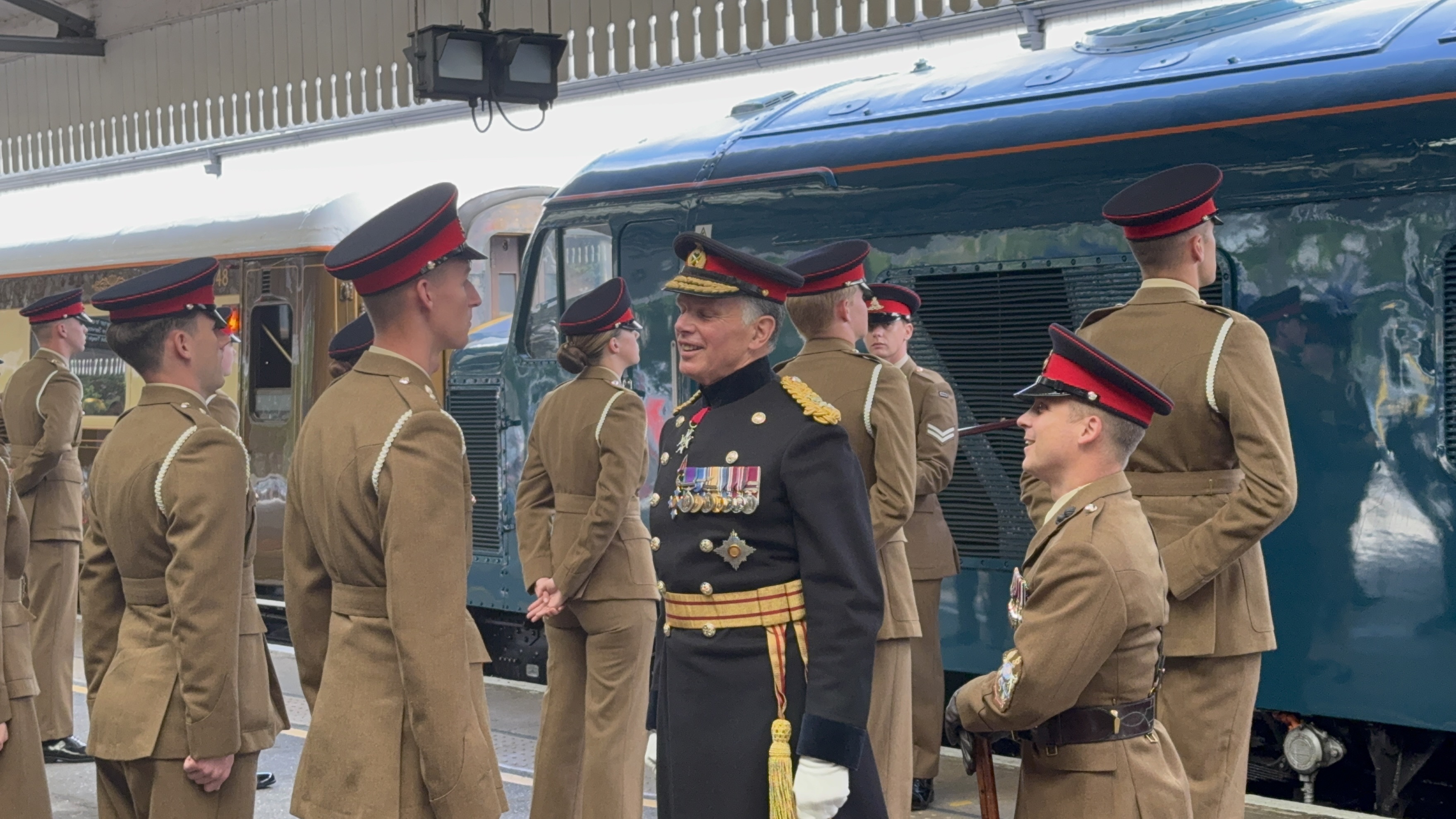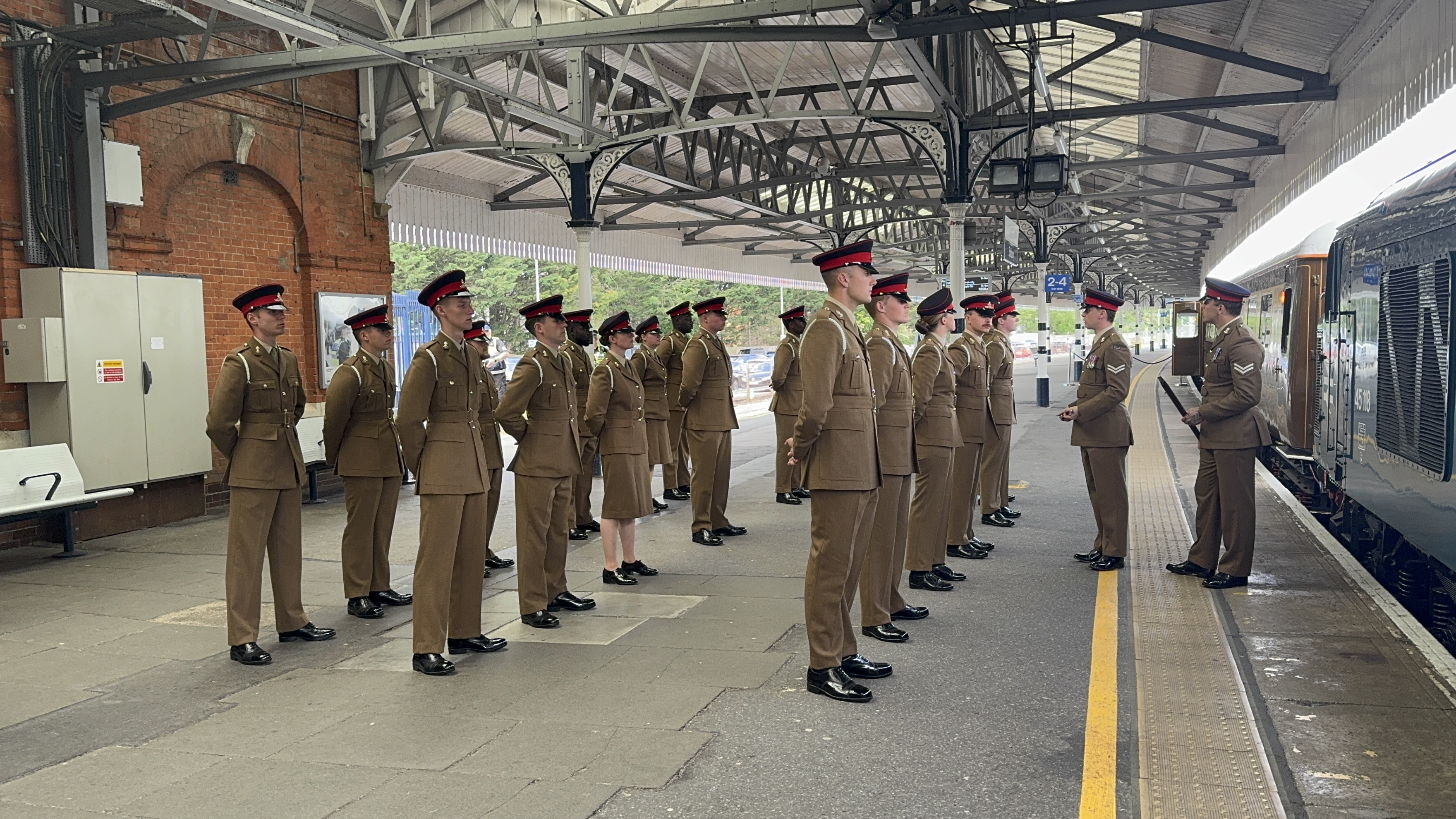 Senior regiment representatives arrived on the rededicated train, having boarded at Warminster, and were saluted on arrival at Salisbury.