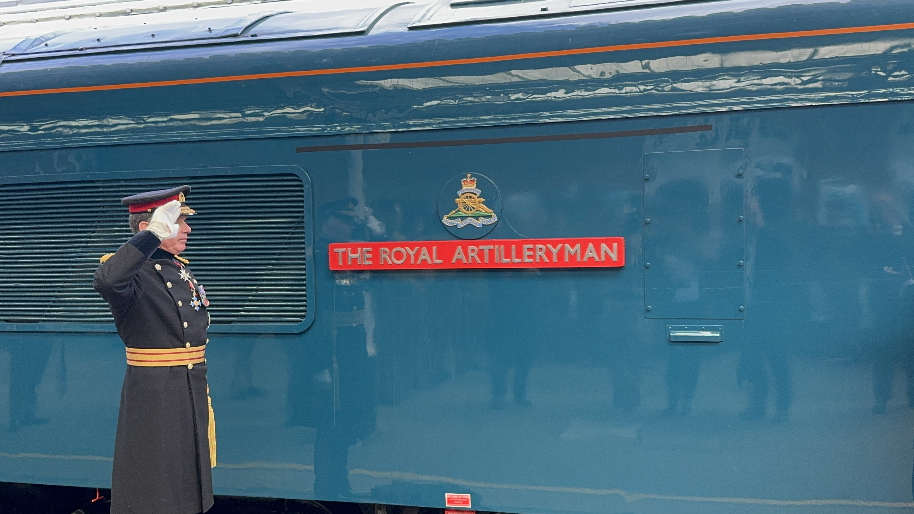 The train, named Royal Artilleryman, was unveiled at Salisbury station, close to the Royal Artillery’s headquarters in Larkhill, with military personnel, notably battery personnel, Royal Artillery Association Members and the Honour Guard, in attendance alongside railway colleagues.