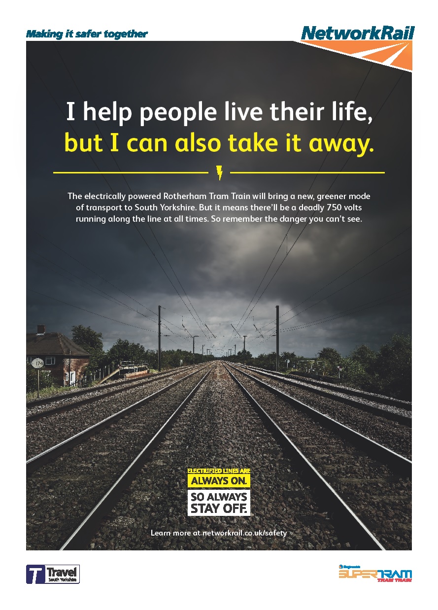 “Electrified lines are always on – so always stay off.” That’s the stark message at the heart of a safety campaign by Network Rail as work to introduce Tram Trains to Sheffield and Rotherham progresses.