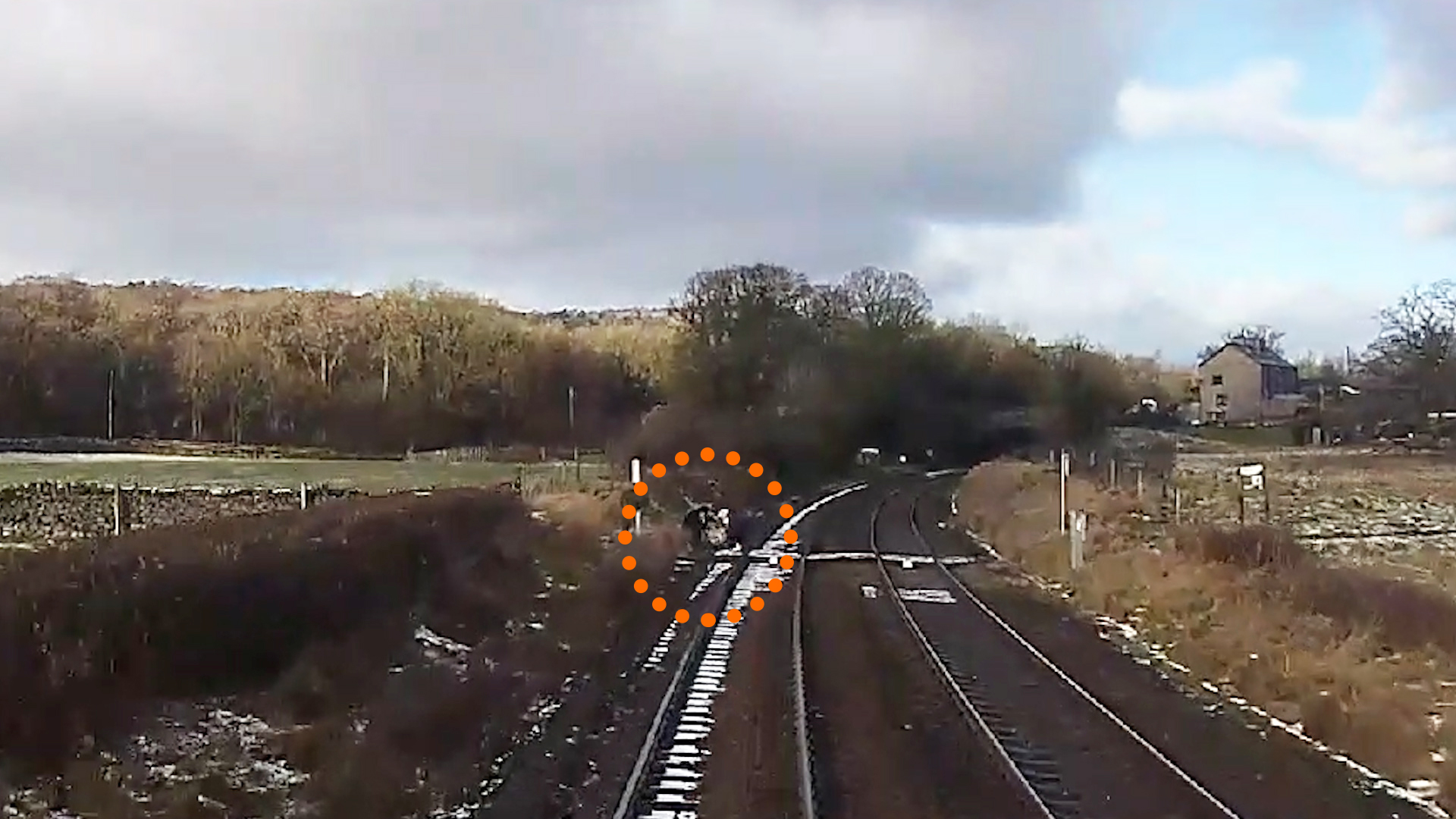 Safety warning as train CCTV catches shocking near miss with dog walkers