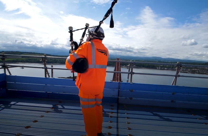With Jubilee events taking place across Britain over the extended Bank Holiday weekend, celebrations started with Network Rail construction manager, Ian Simms playing the bagpipes from the cathedral of Scotland’s Railway – the Forth Rail Bridge.