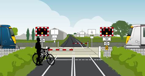 See track // think train – cyclists’ guide to using level crossings published by Network Rail
