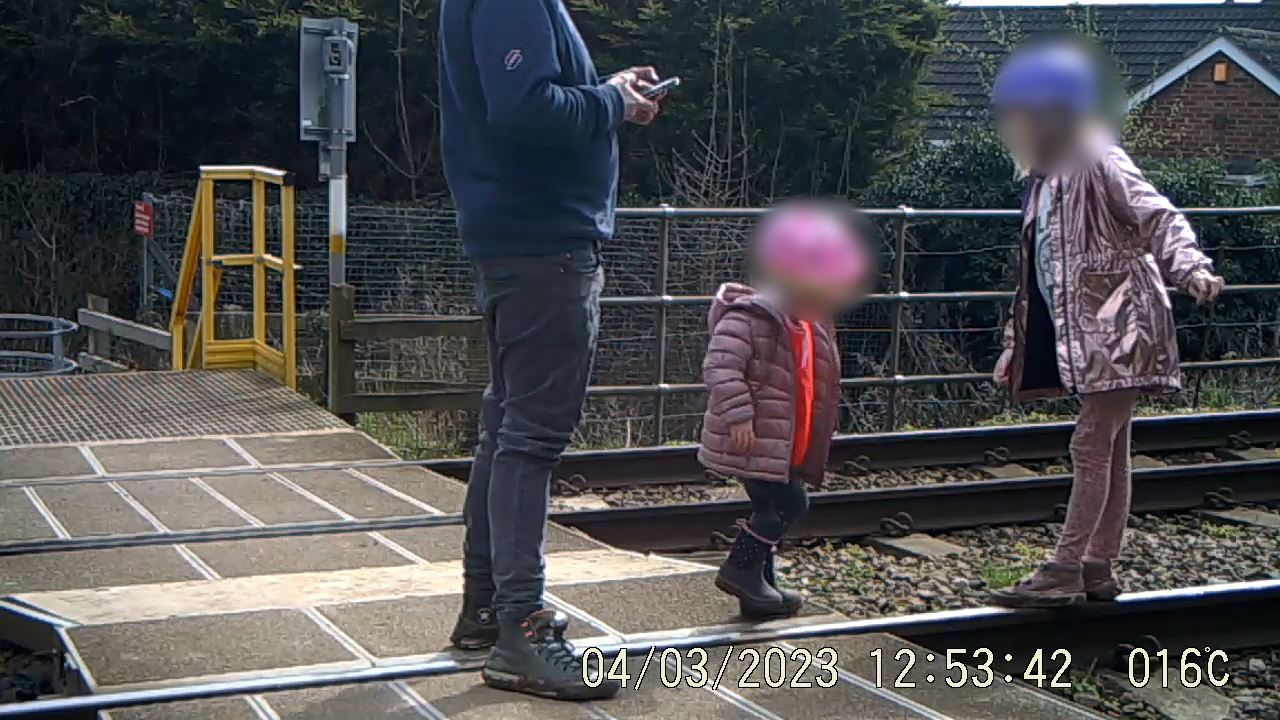 - 3 April 2023 – a man with two little girls using the rails to play on pointing out the ‘pretty hills’ in the distance to them. They were caught on camera on the tracks for over a minute and a half.