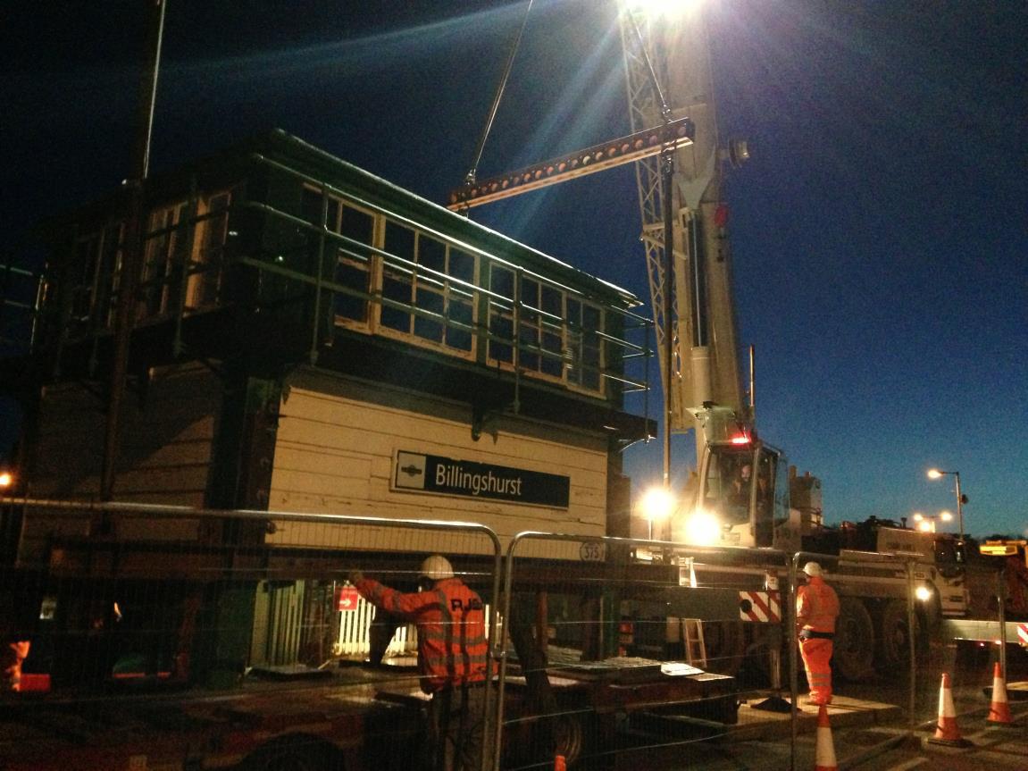 A Victorian signal box took to the skies under a crane in the early hours of Sunday morning, marking the culmination of a £21m investment in the railway through the Arun Valley.