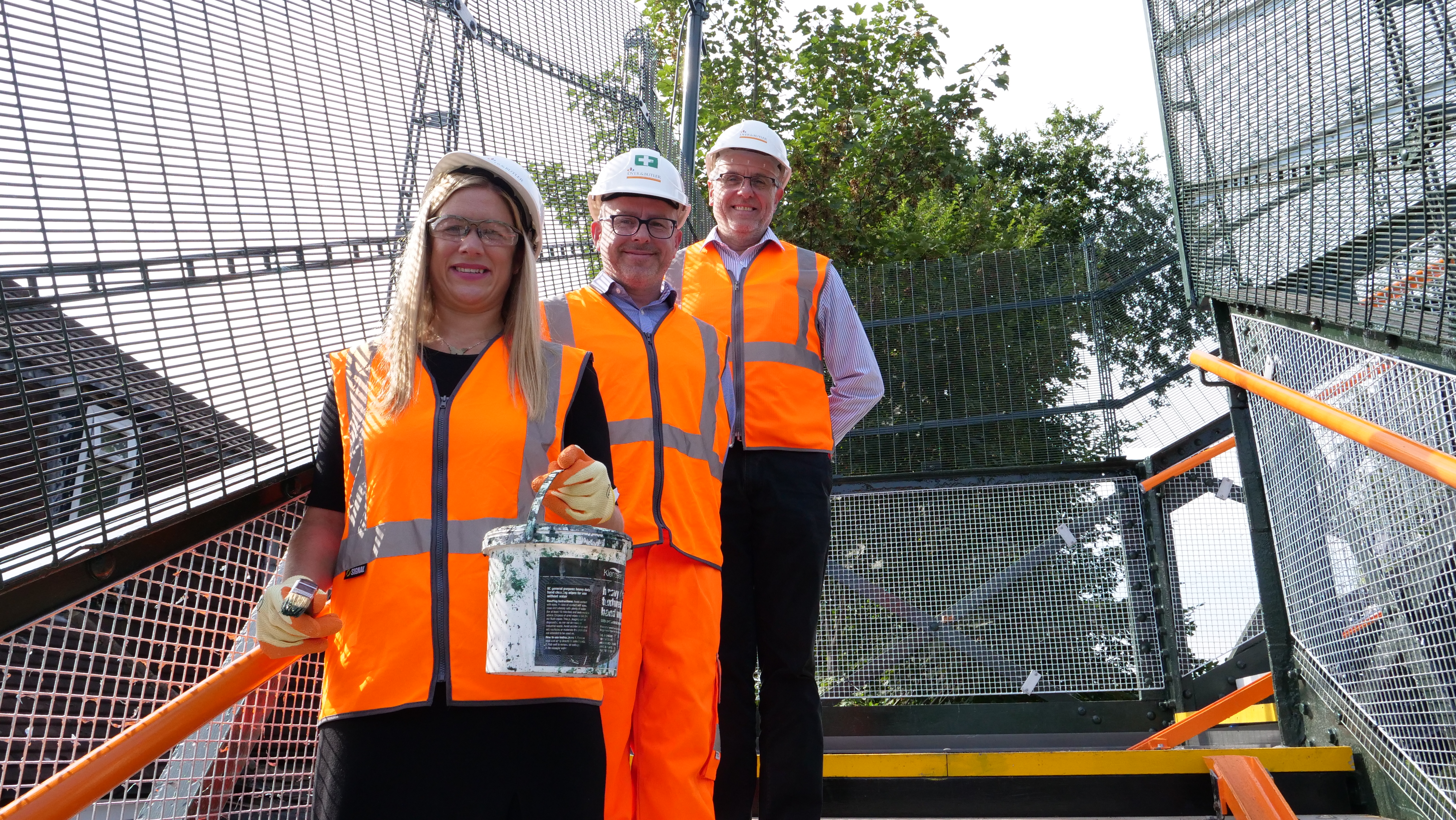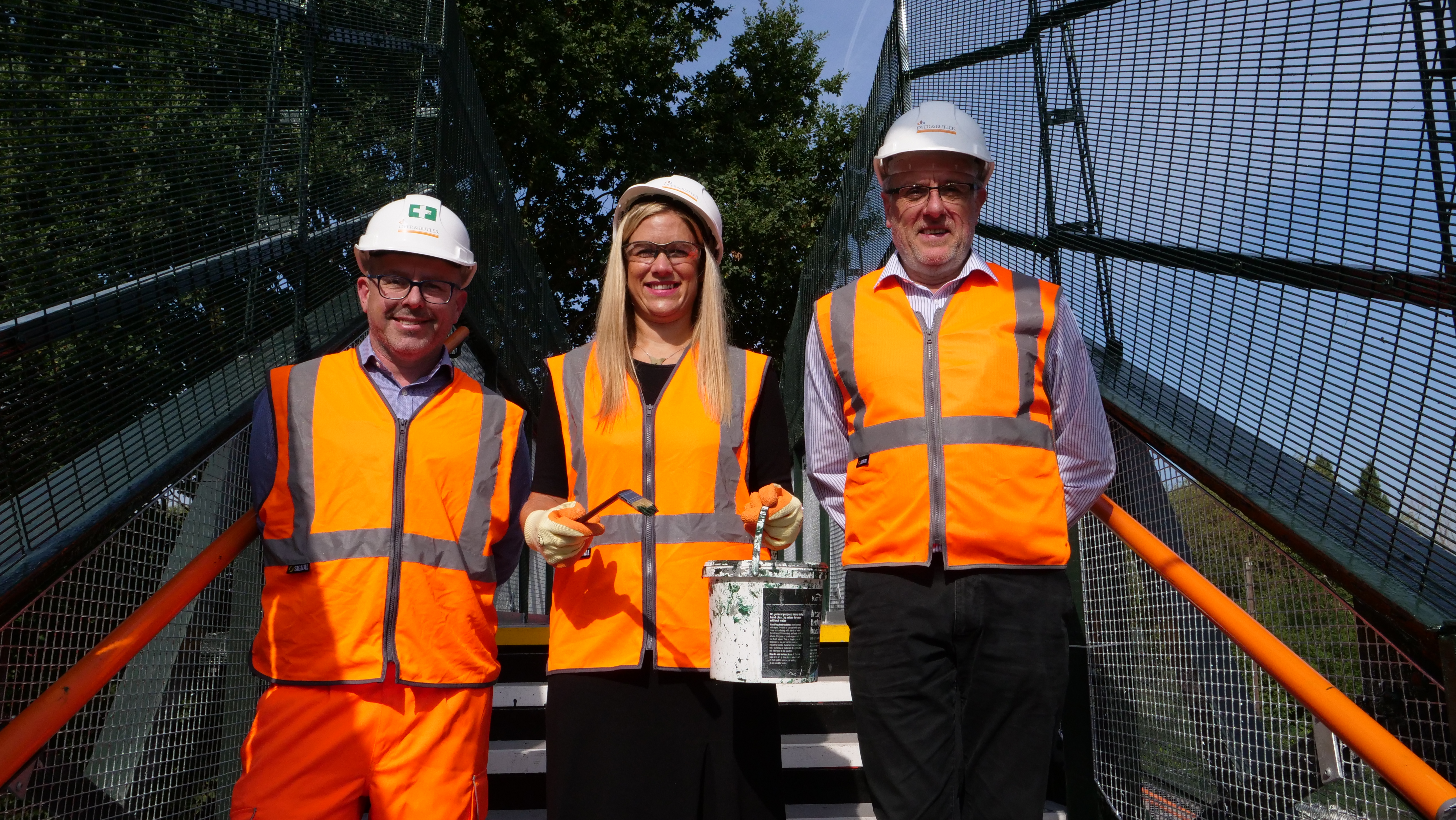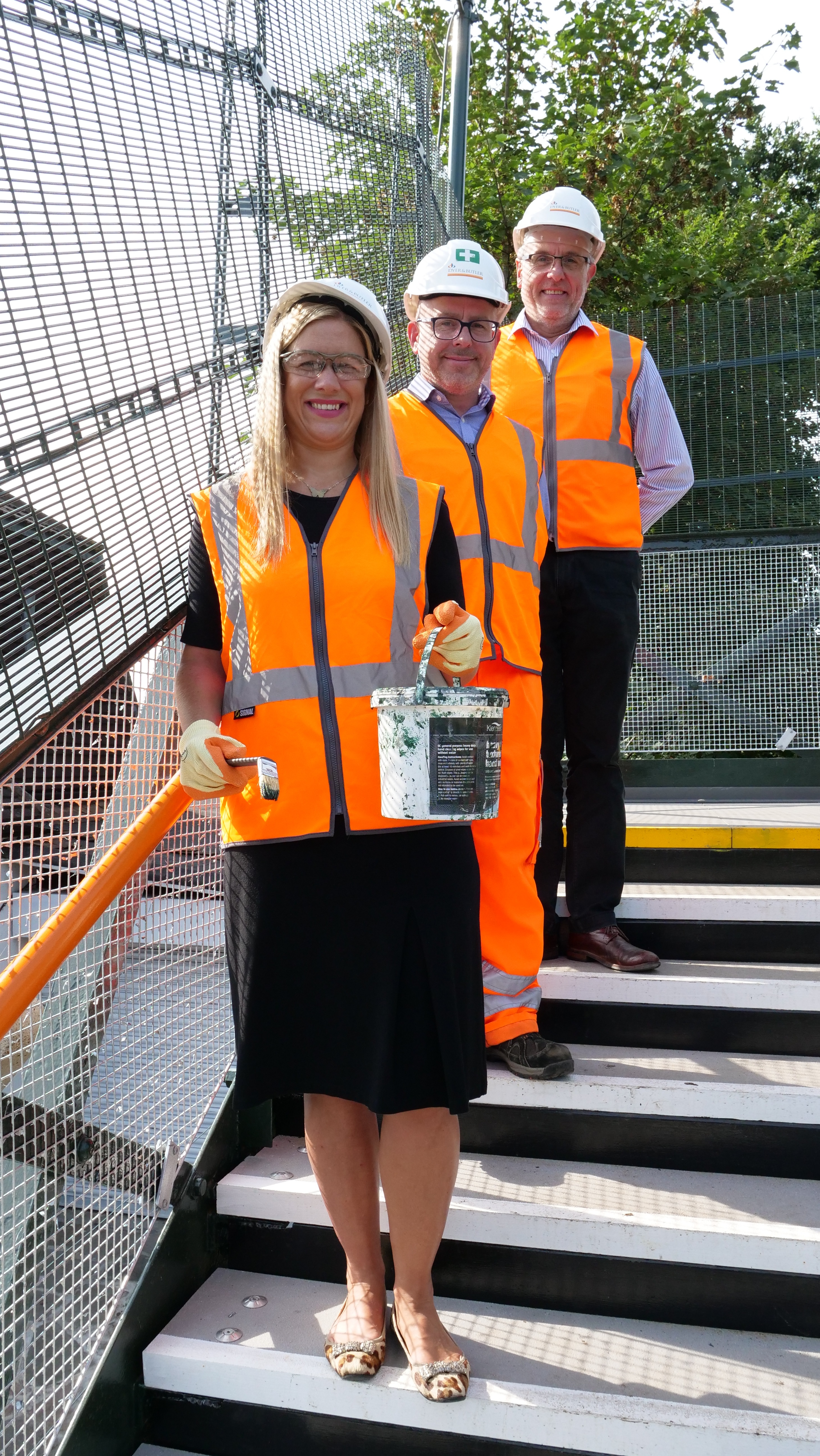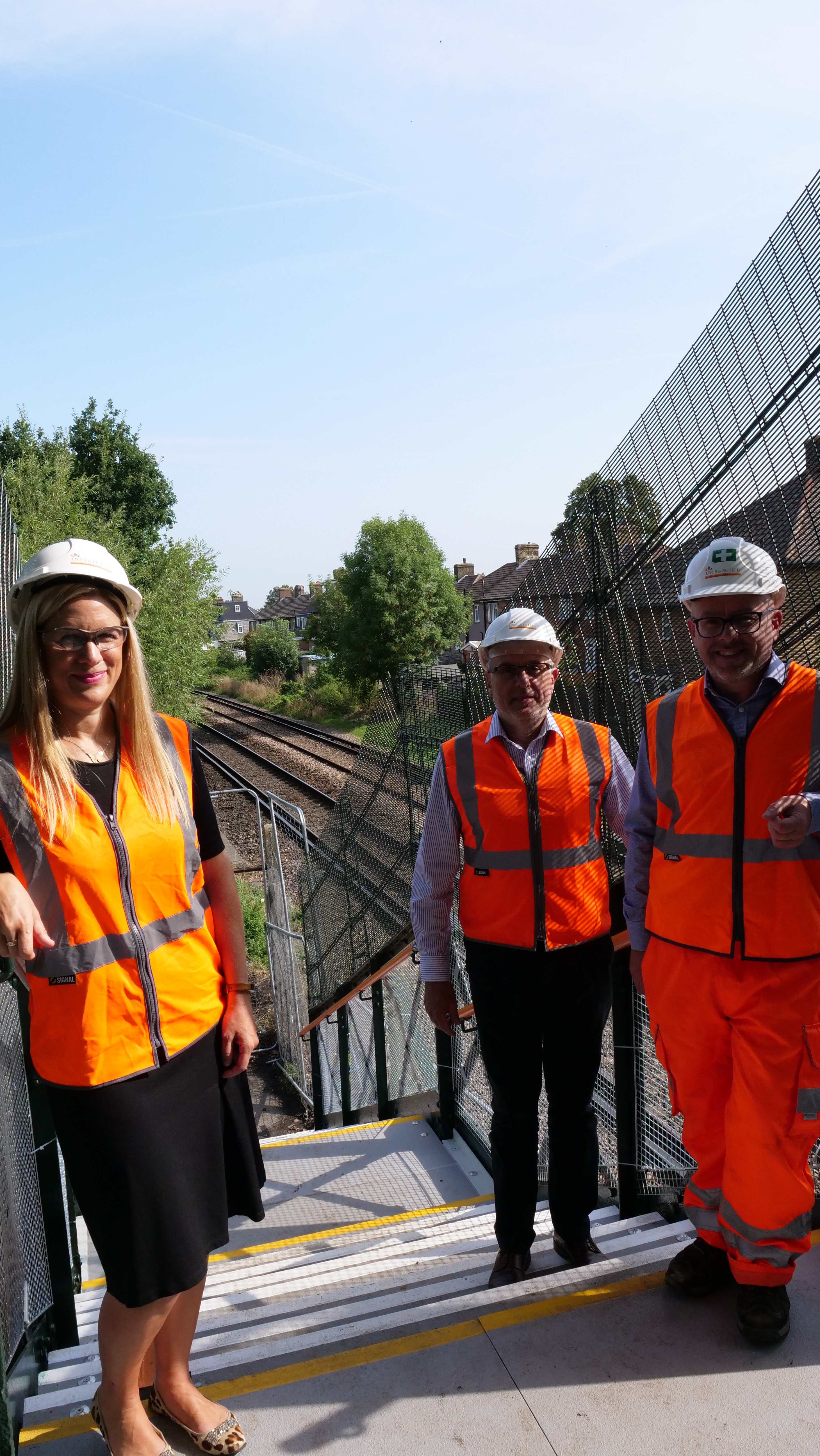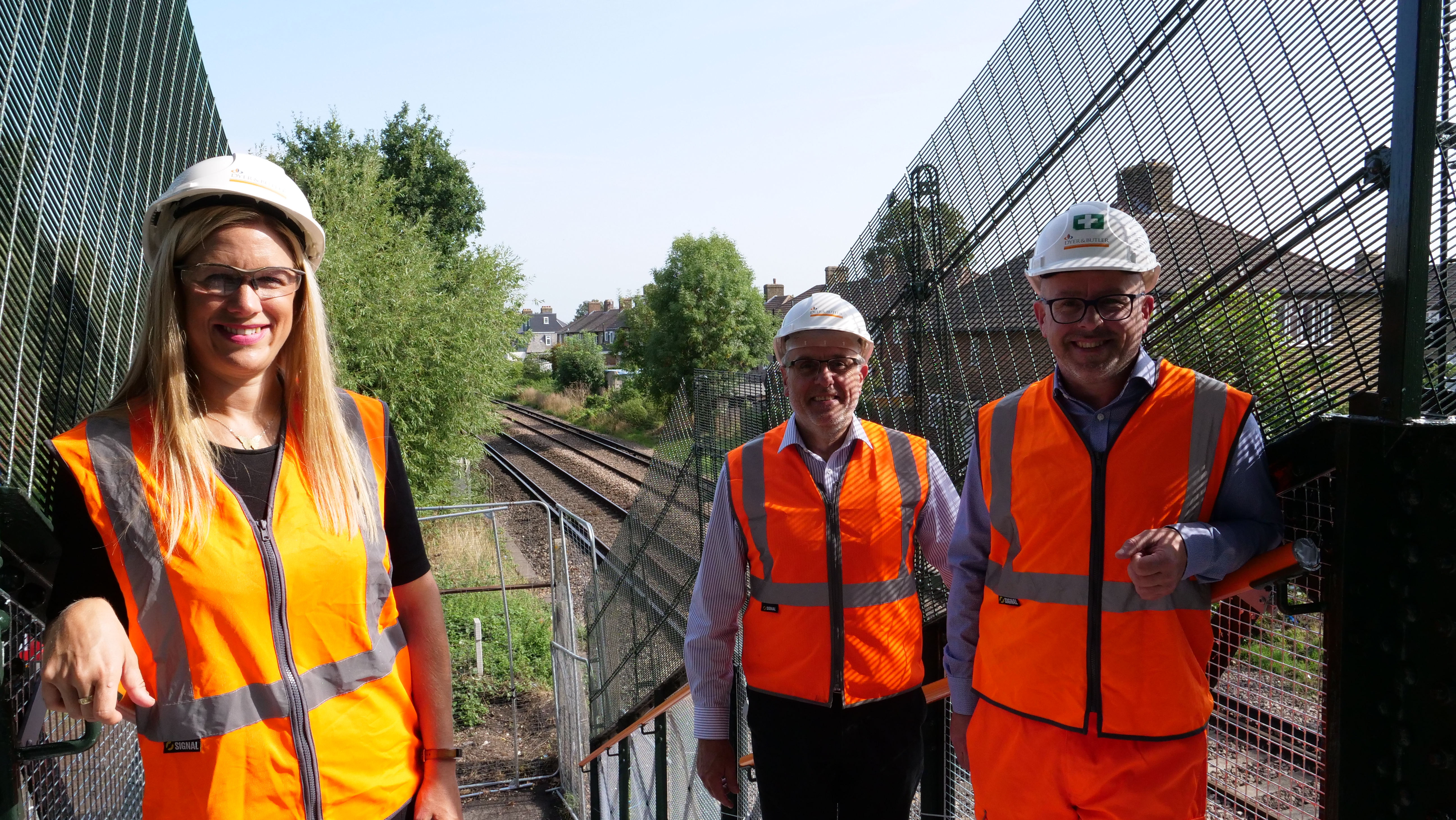 Caption for main picture: Left to right, Ellie Reeves MP, Jeff Taylor of Dyer and Butler, and Network Rail's David Line