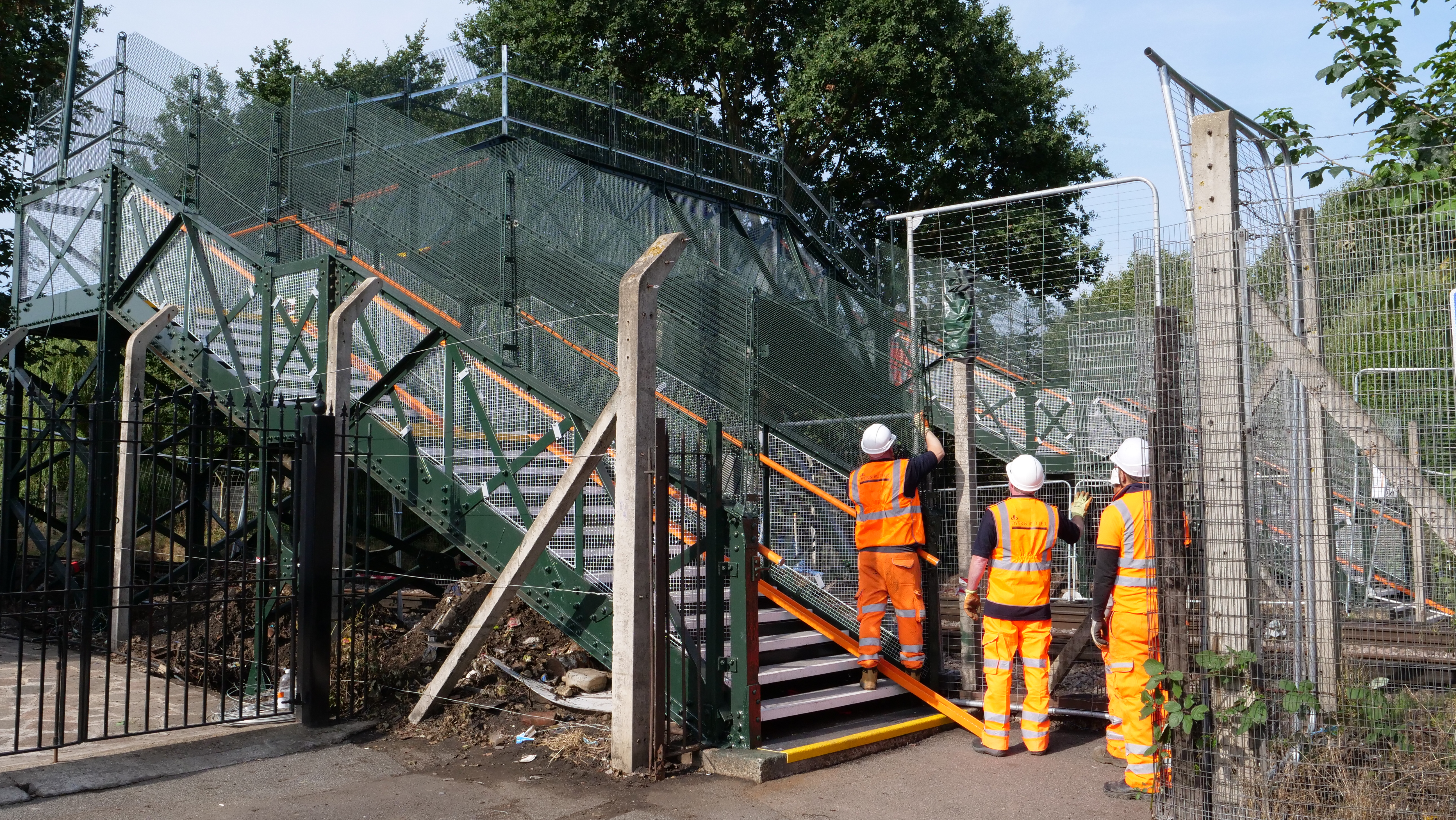 Network Rail and their contractors Dyer and Butler were able to erect a temporary bridge and scaffolding in just one day, piggybacking on an already planned weekend closure for rail maintenance.