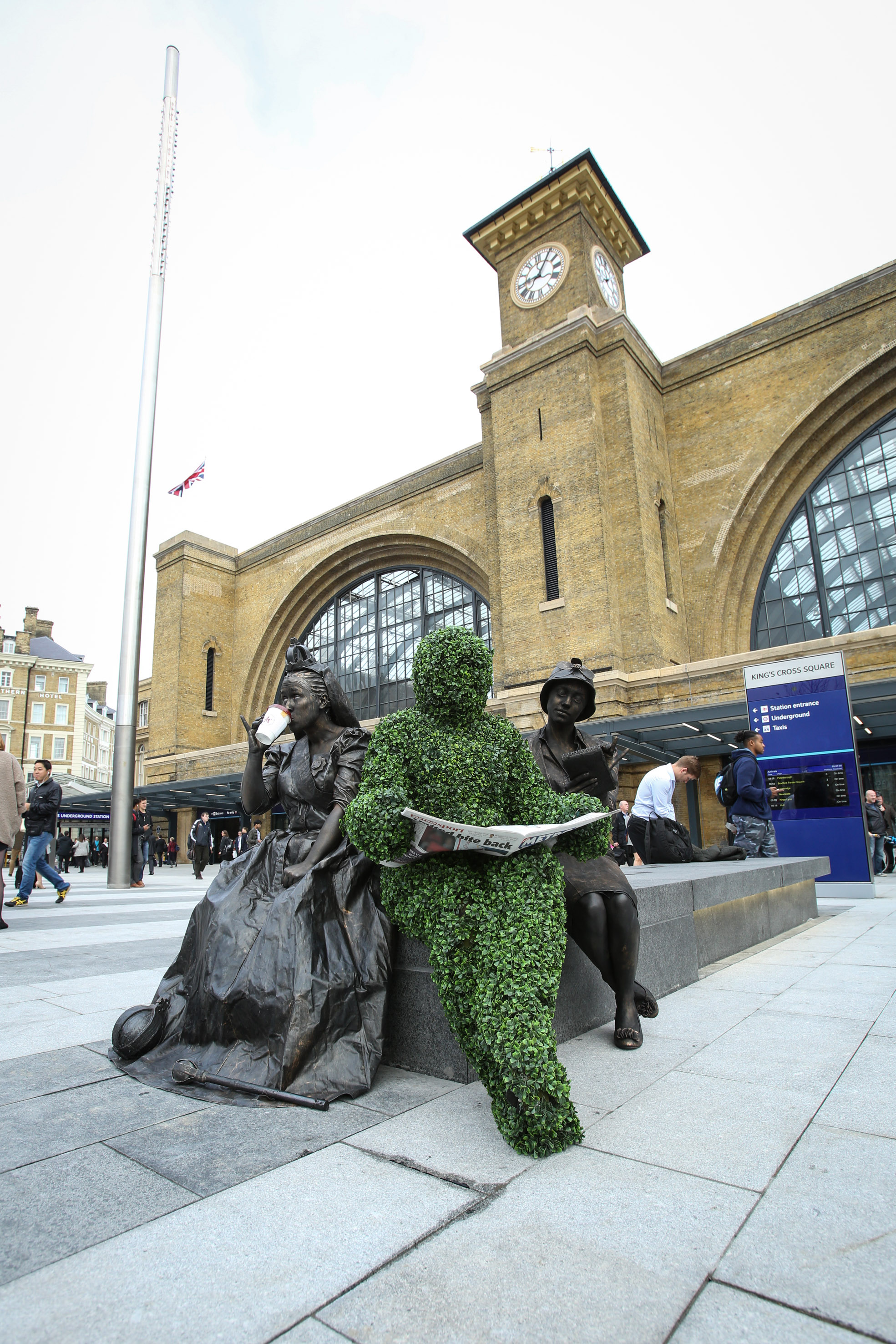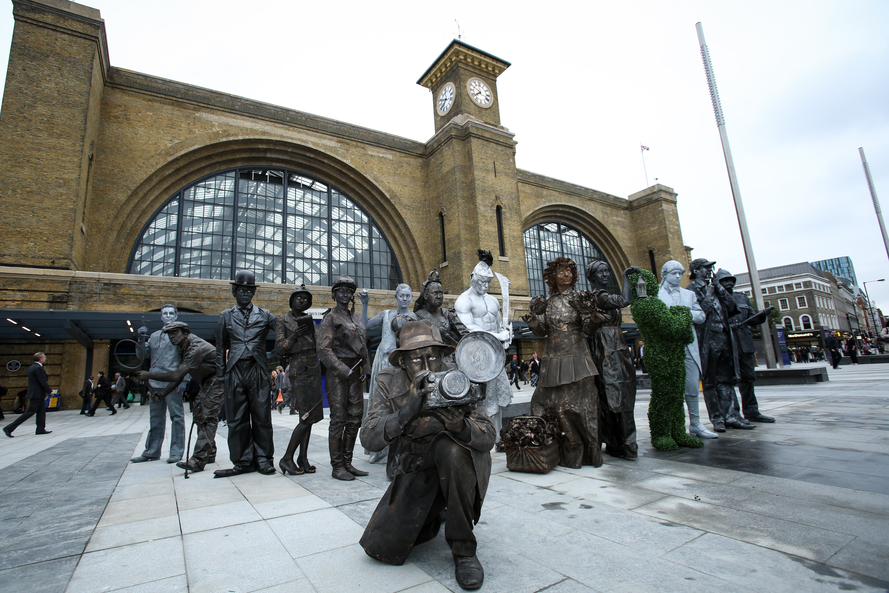 Early morning commuters were welcomed to the new square by Victorian-themed ‘living statues’ who entertained people in the space, giving a nod to the station’s heritage in what is London’s newest public open space.