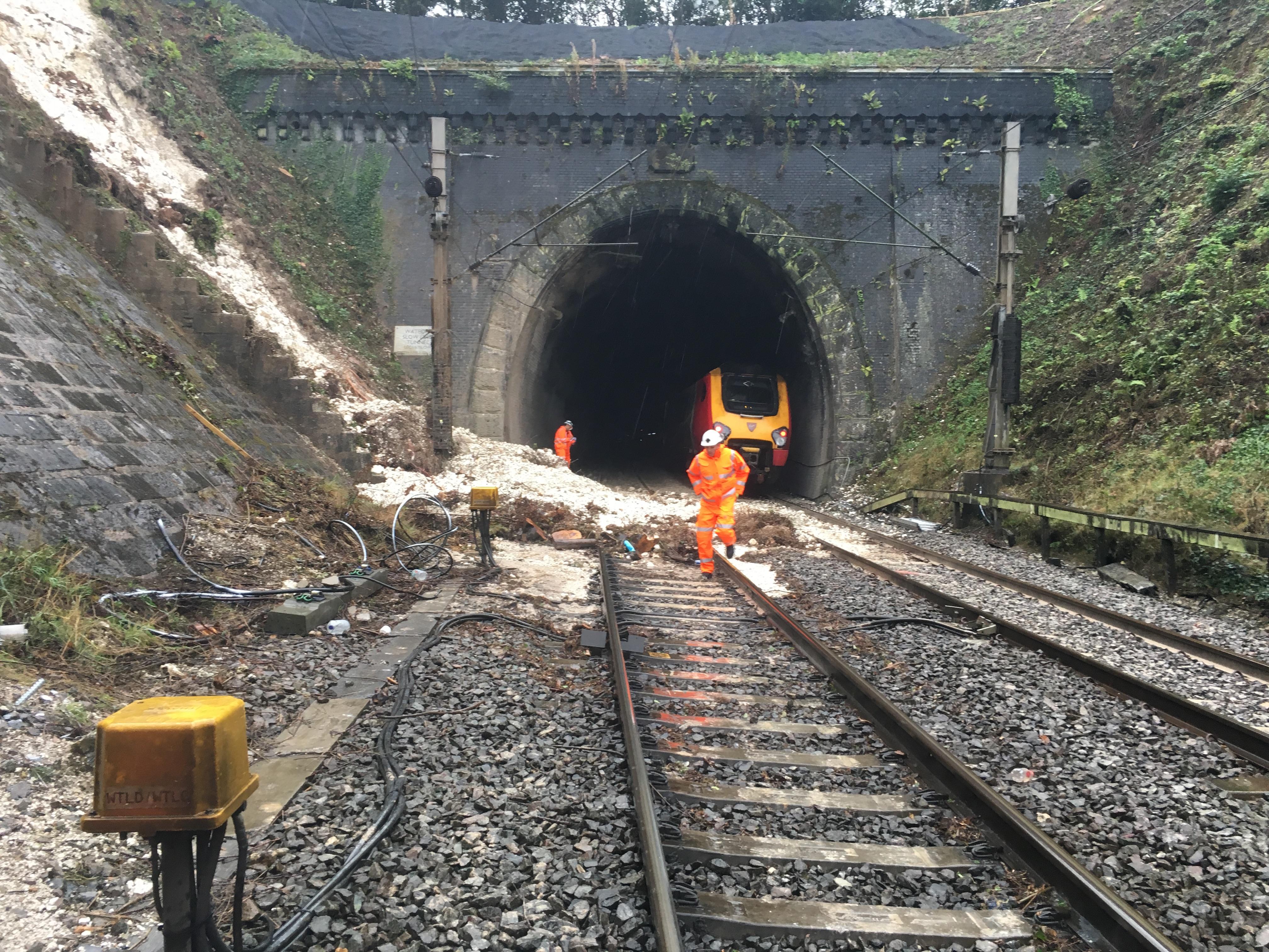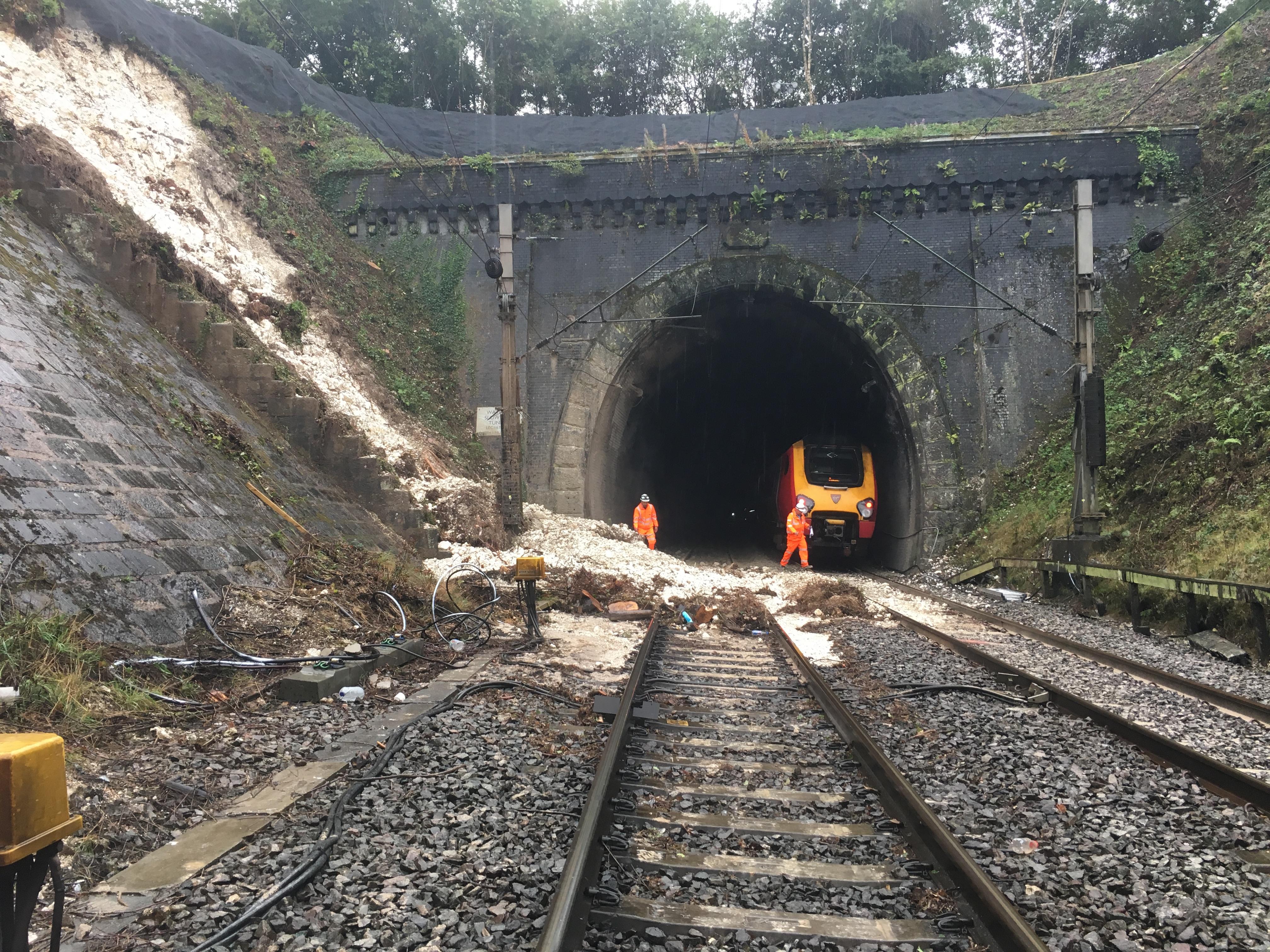 "Passengers have been safely removed from both trains and two of the four lines through the area are open. We are now working to remove both trains from the tunnel and will then carry out safety checks and repairs to the landslip and infrastructure. We hope to have normal service through the area in time for the Monday morning peak.