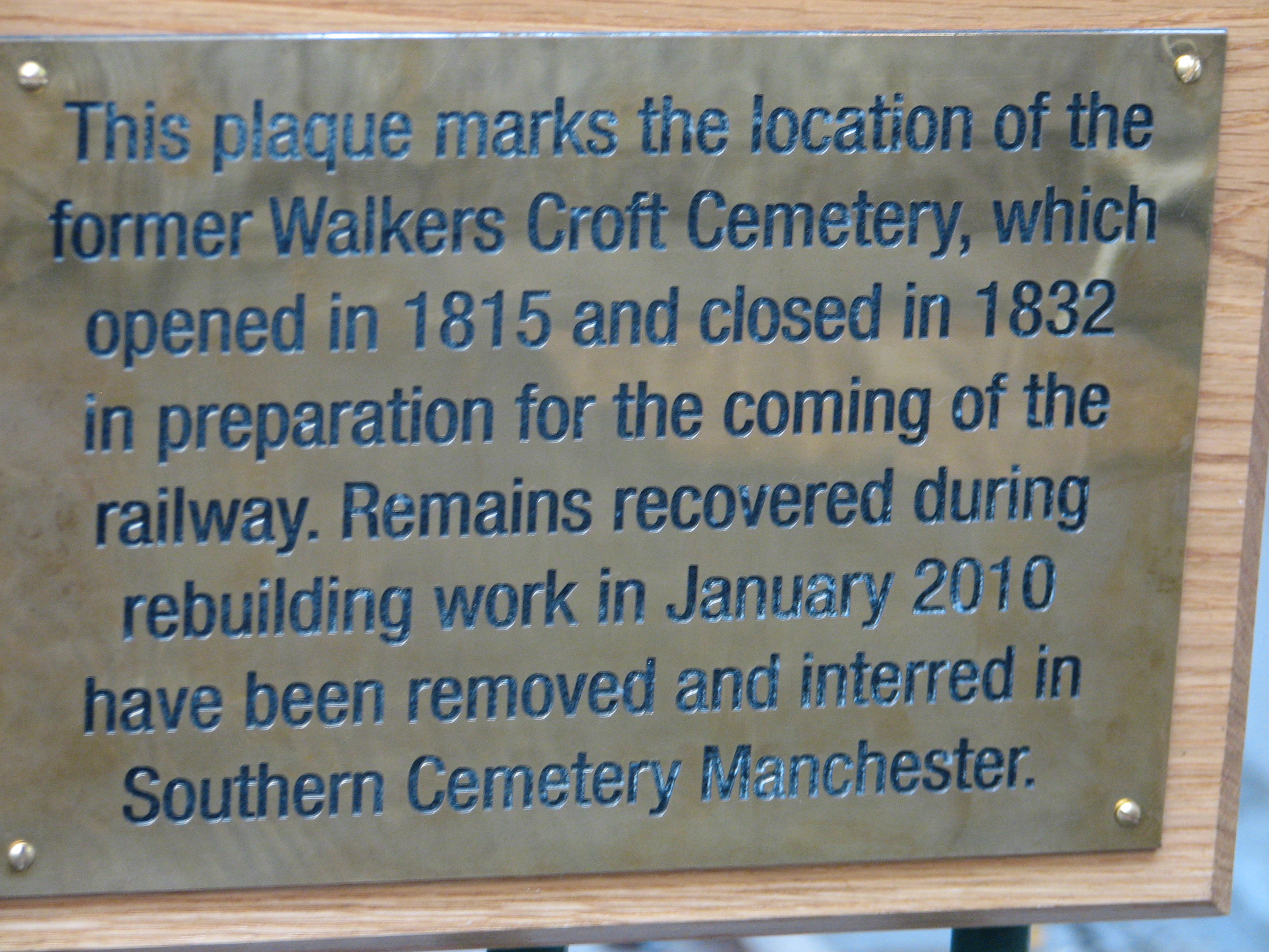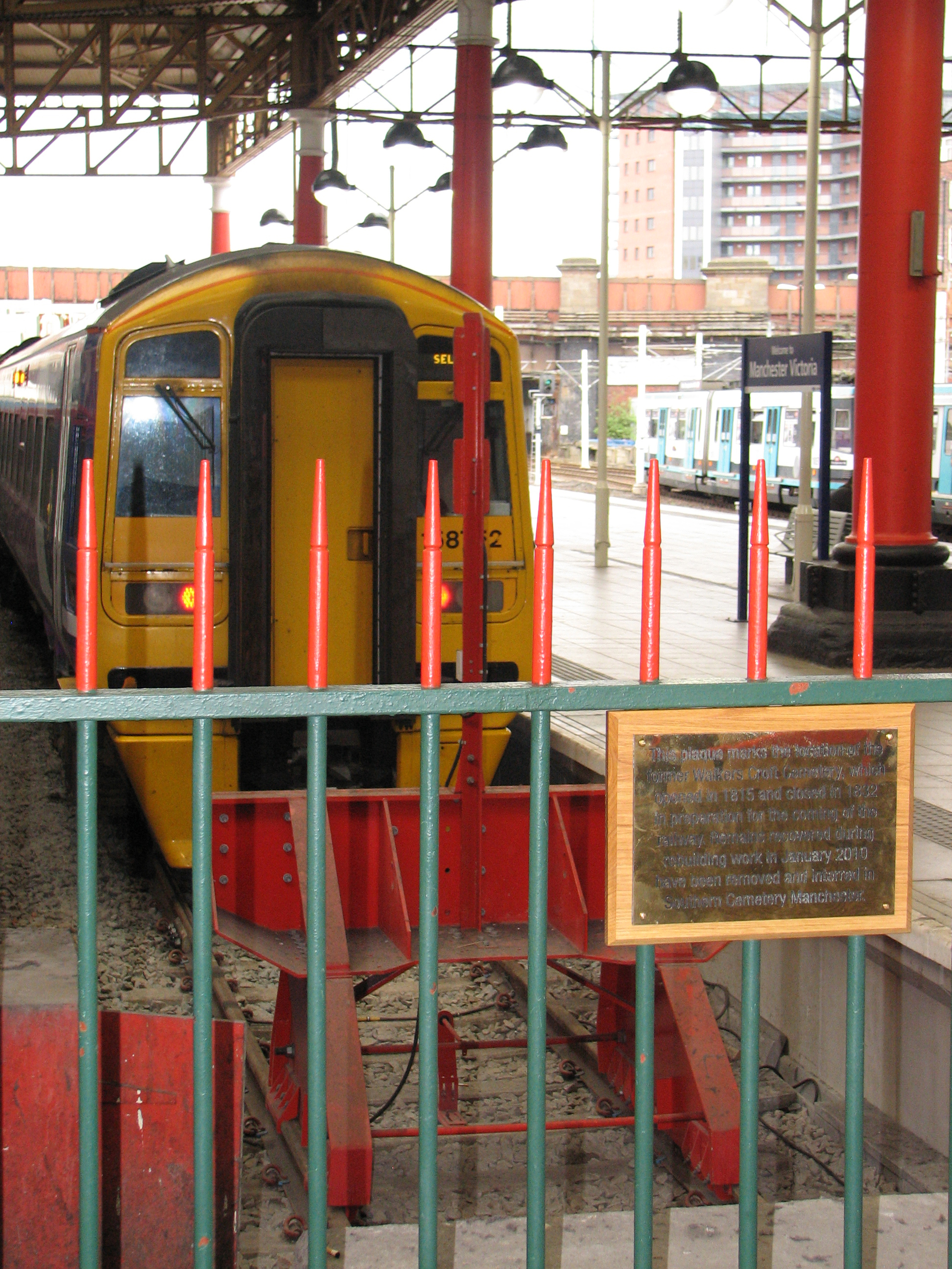 A plaque has been placed on railings at the head of platforms 1 and 2 at Manchester’s Victoria station to mark the location of a former burial ground.