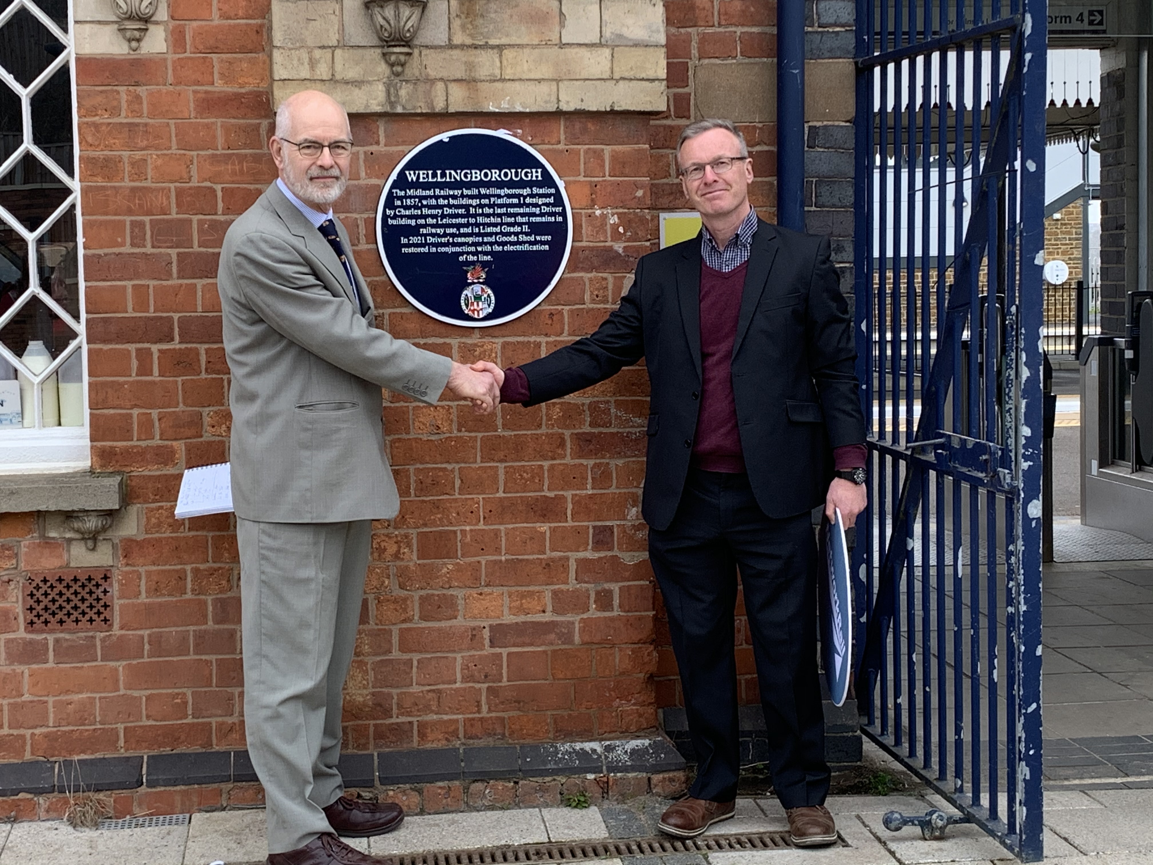 Representatives from Network Rail, East Midlands Railway (EMR), Historic England and the Railway Heritage Trust attended the unveiling of the blue plaques. They were joined by Dr Toby Driver, great-great-grandson of Wellingborough station’s original designer, Charles Henry Driver.