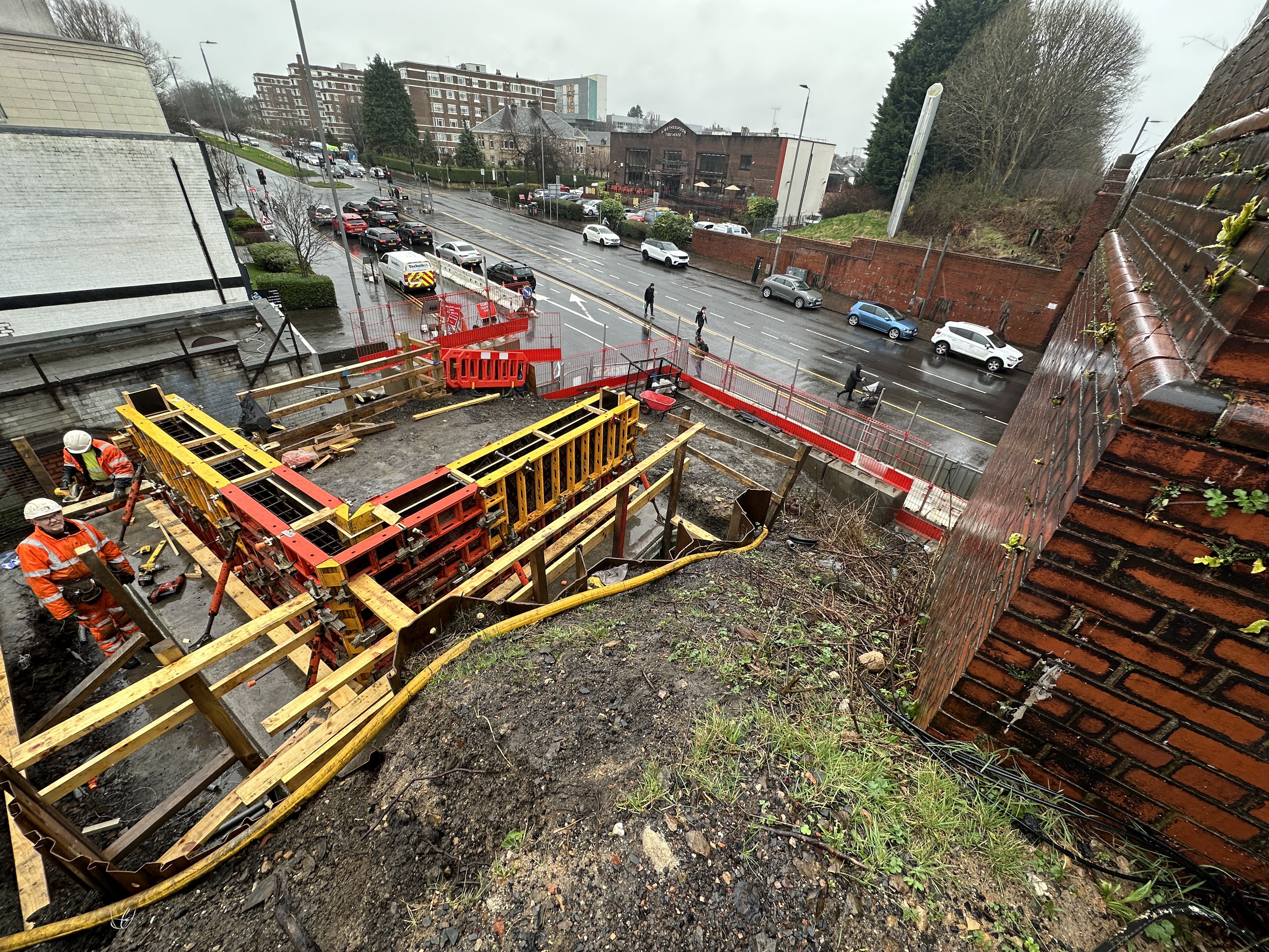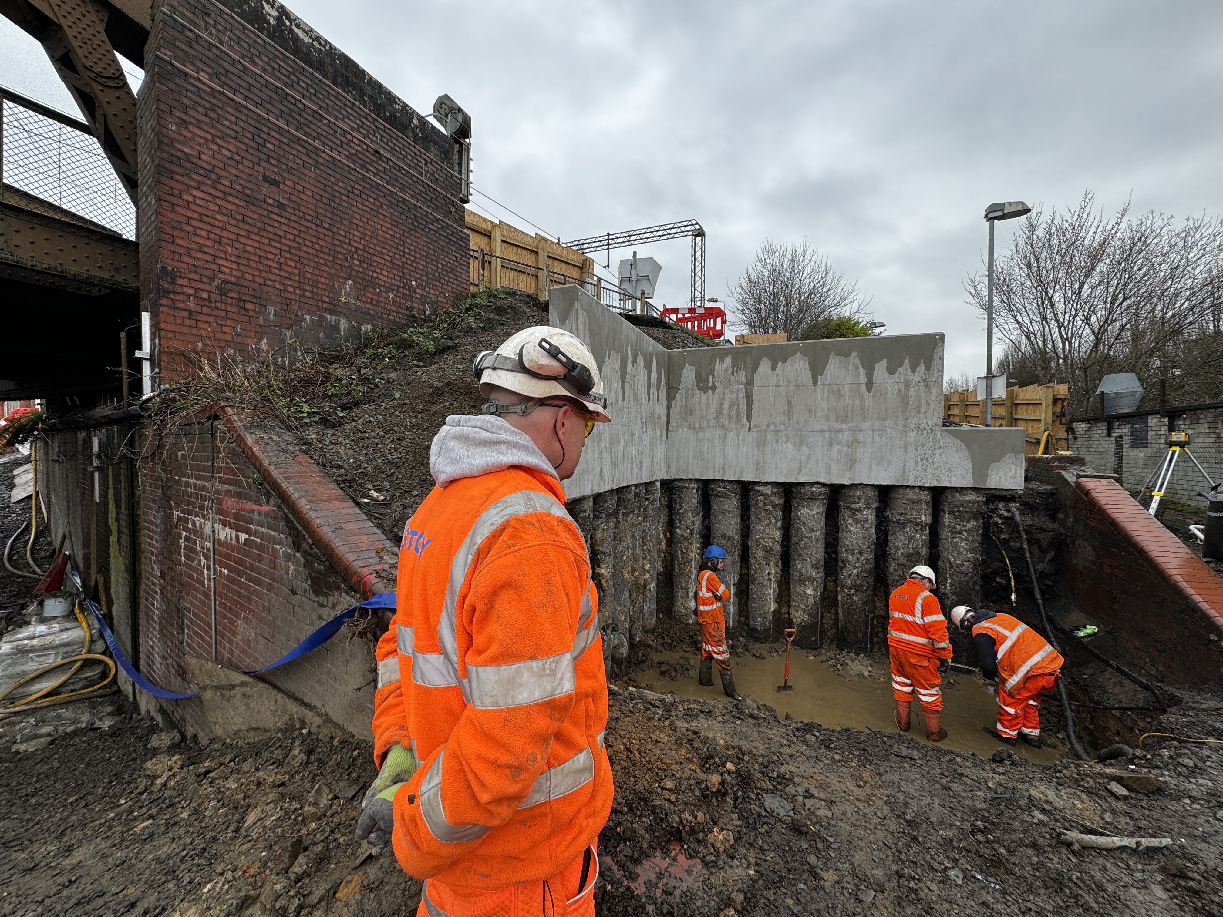 This helps make sure the railway bridge and the embankment are supported during the excavation work and once the lifts are installed.