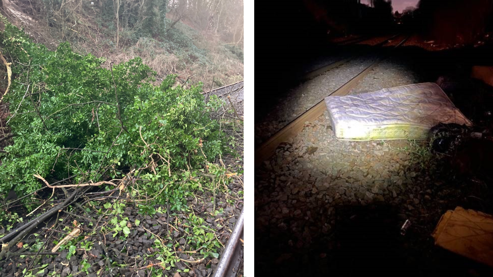 A fly-away mattress was also cleared from tracks at Lye near Stourbridge and some ceiling panels on a platform roof at Wolverhampton station were damaged by the gale force winds causing disruption for a short time.
