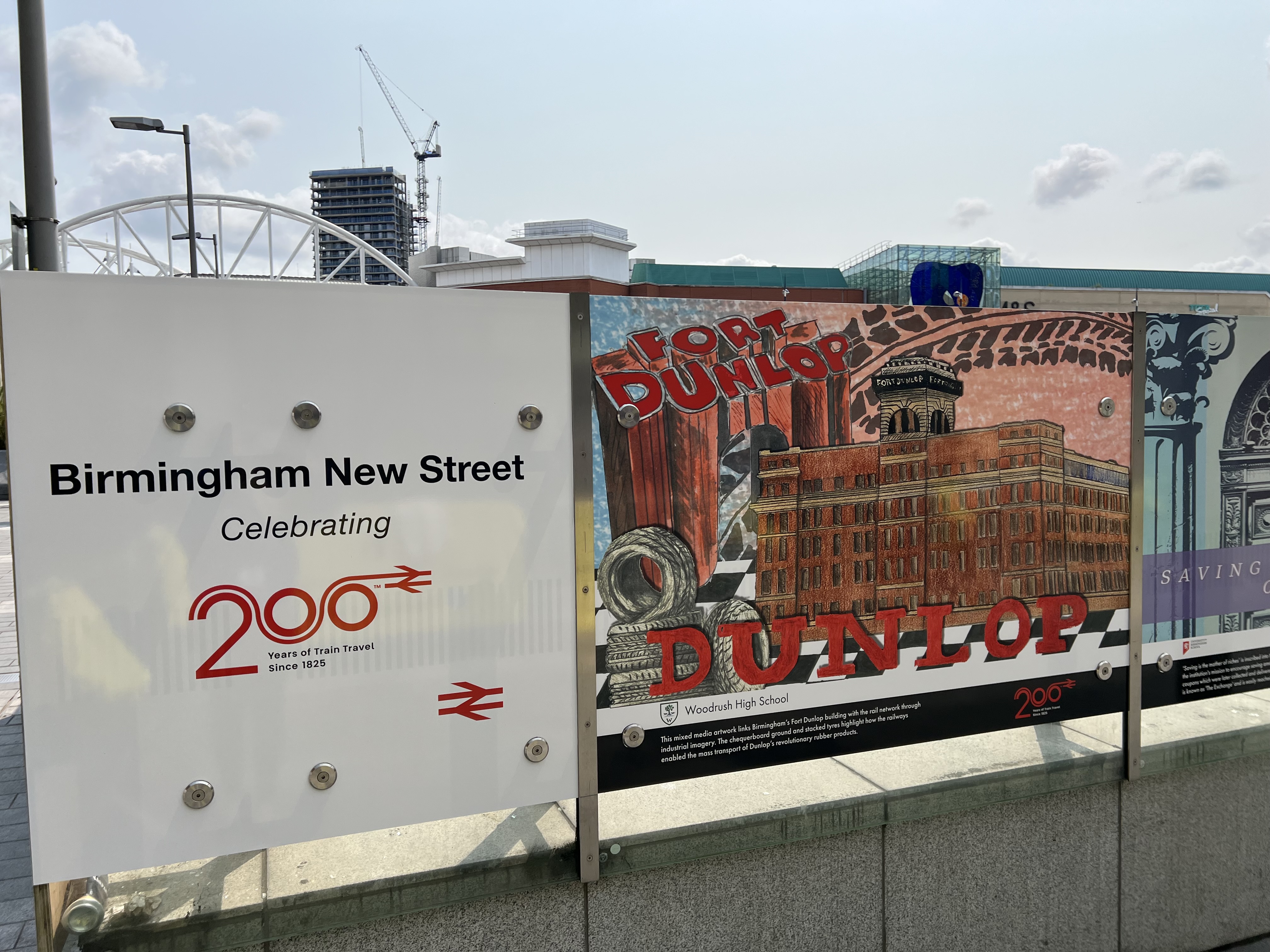 On display at Birmingham New Street, nearly 30 different pieces of art by pupils and students at 6 schools and colleges across the city have been installed as part of this year's Railway 200 celebrations.