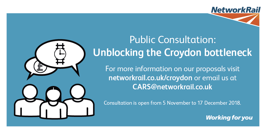 A six-week public consultation period will take place from 5 November to 17 December 2018 to give passengers, businesses and members of the public the opportunity to have their say on the proposals. They can do so online at networkrail.co.uk/croydon or by completing a questionnaire which will be handed out at stations along the Brighton Main Line including Brighton, Gatwick Airport, East Croydon, London Bridge and London Victoria.