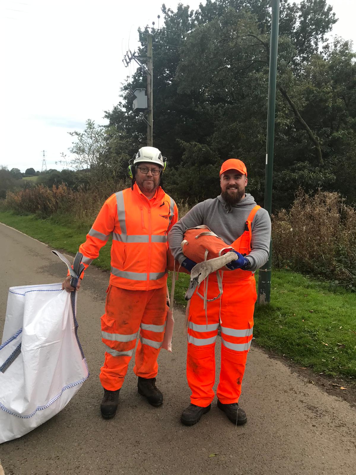 Jackie Hickman, inspector at RSPCA said: "The men were absolutely fantastic and went above and beyond for animal welfare. Both of the cygnets were angry and hissing quite a lot, but they managed to capture them safely and calmly and get them off the line. They stayed for a long time, late on a Thursday night to do this, and we would like to thank them for the enormous care and dedication they showed."