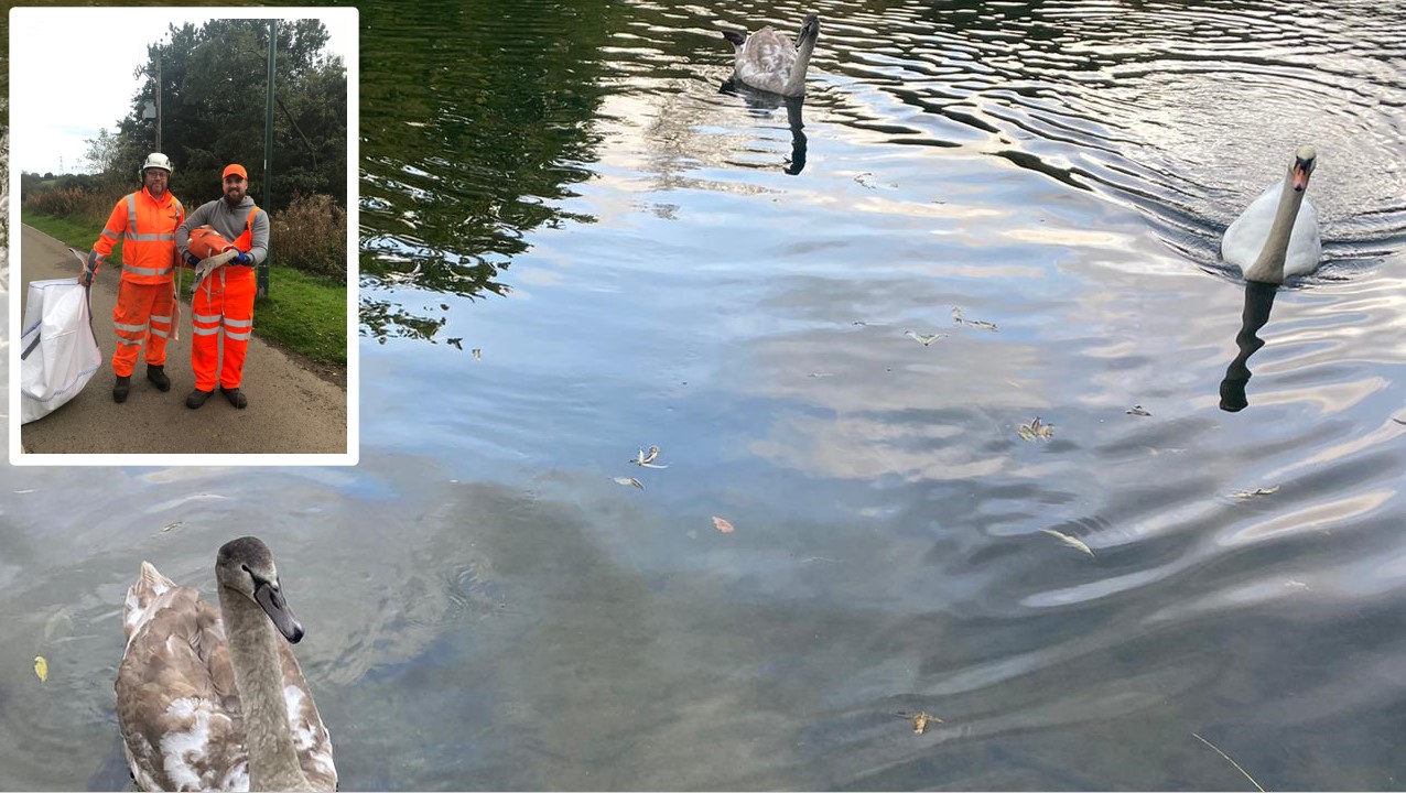 Swanning about: railway rescue for confused cygnets