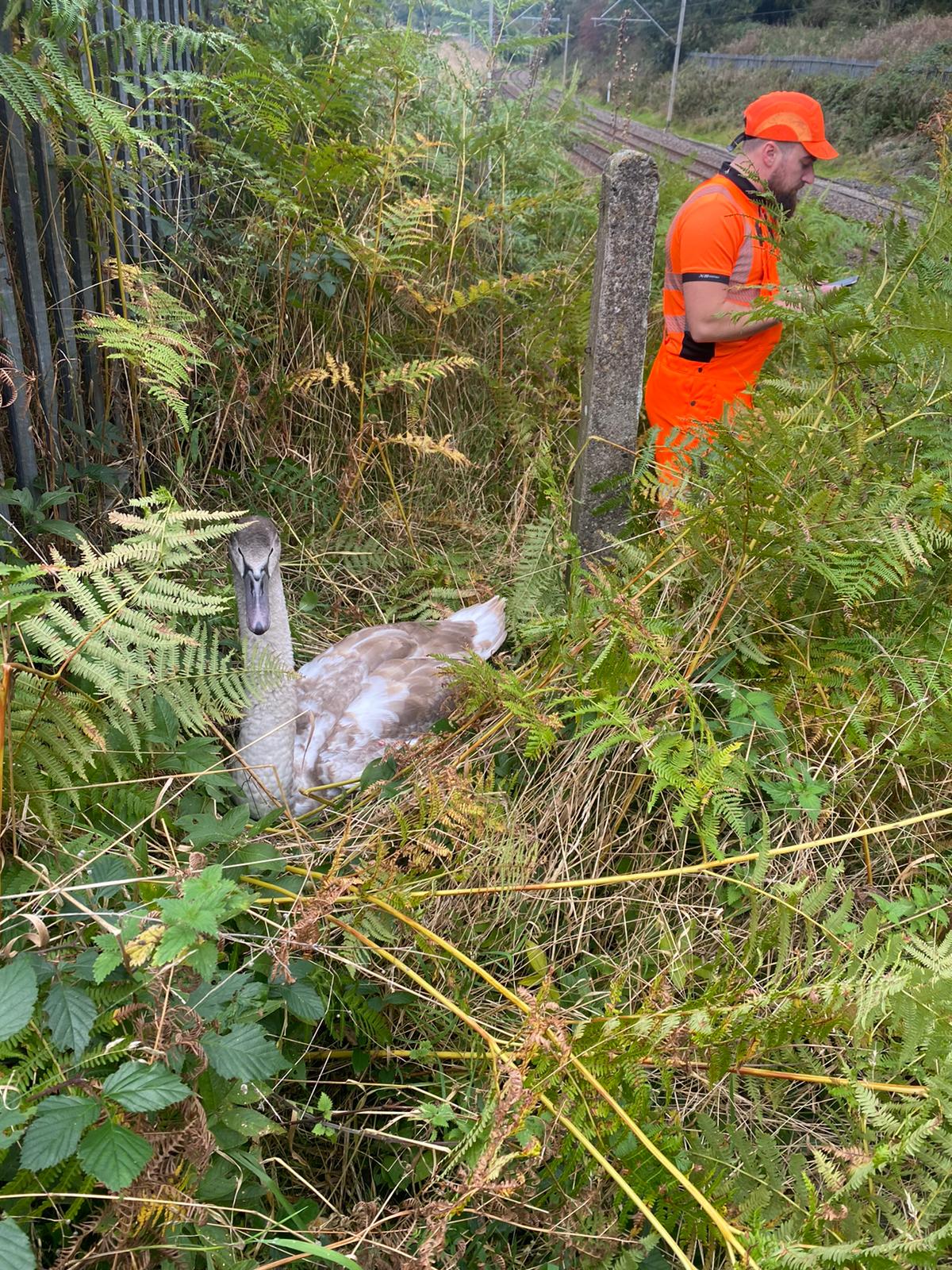 The first cygnet was spotted by a member of the public on Thursday, 14 October, who alerted Network Rail workers Steve Brough and Daniel Deaville, on the track nearby.