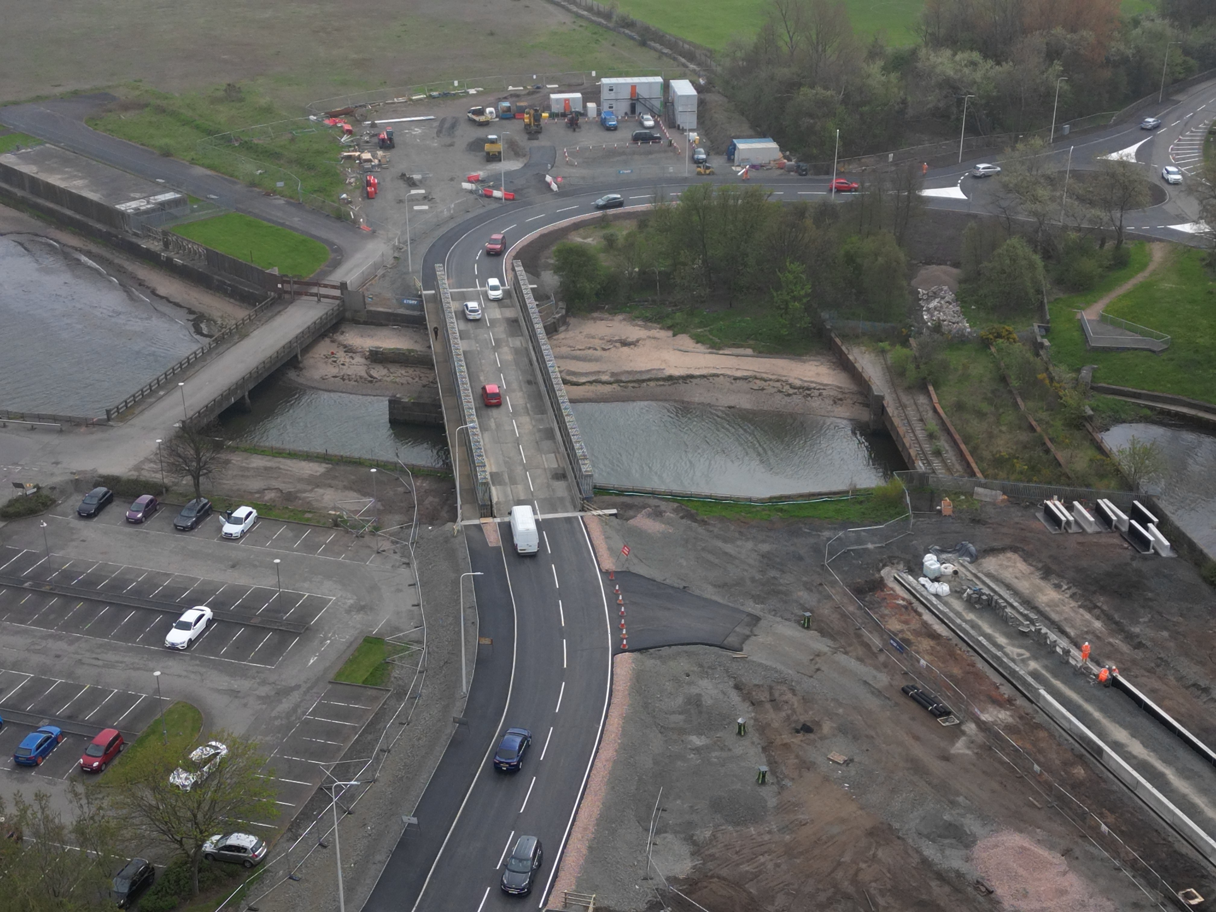 The new temporary crossing will support circa 18,000 vehicle movements per day during major work to replace the abutments and bridge deck of the weight-restricted 75-year-old road bridge which is suffering from significant deterioration and showing signs of chlorine contamination and corrosion.