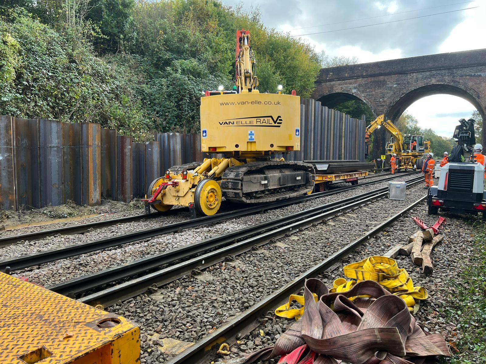 The work over the October half-term was spread along the line, with major engineering projects at multiple locations, including both ends of Wadhurst Tunnel, Strawberry Hill, Churchsettle, Nevill Golf Club and Crowhurst. Embankments and cuttings were shored up using a variety of engineering approaches, from sheet piling, to soil nails and rock anchors.
