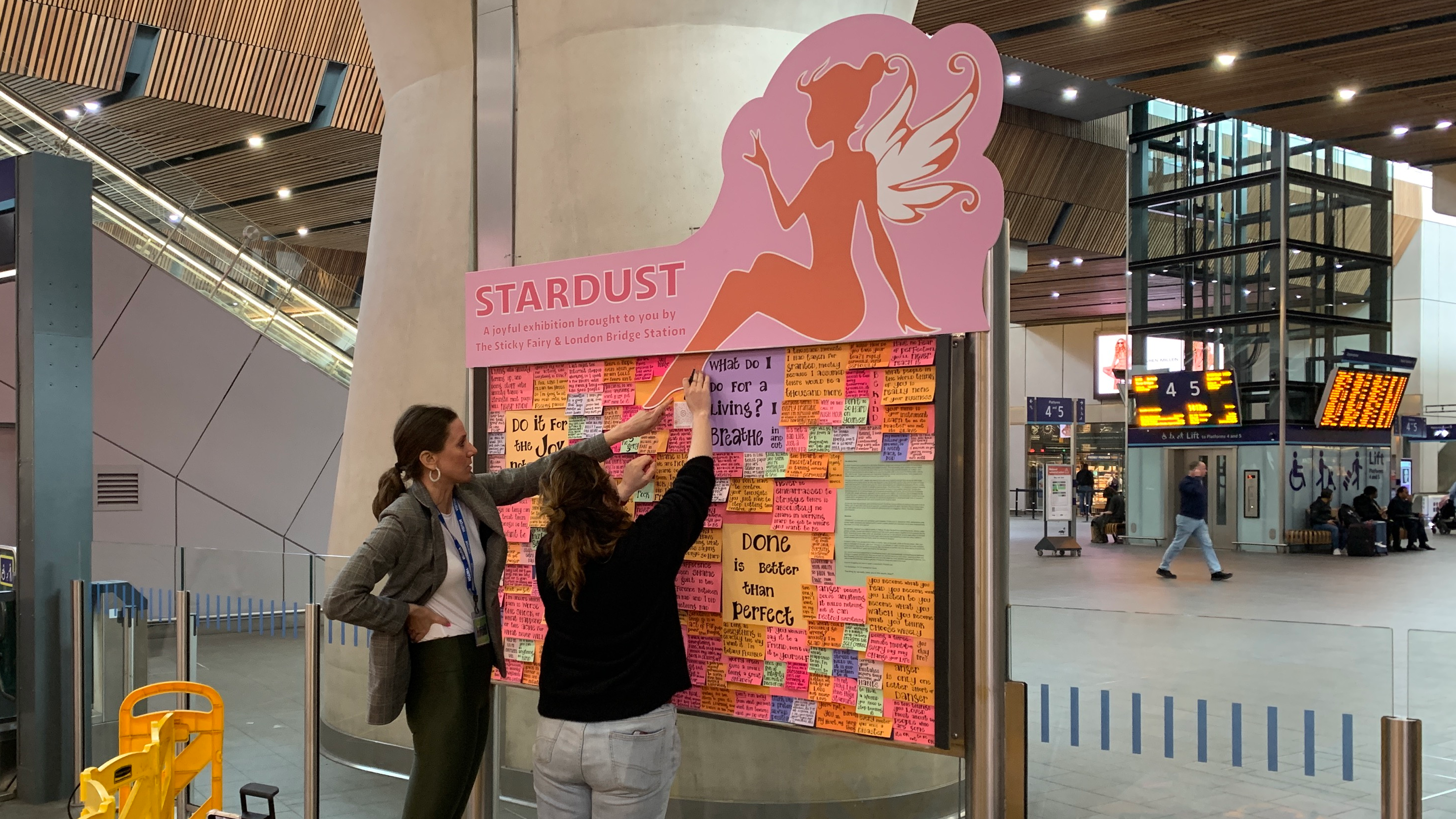 Passengers travelling through London Bridge receive a visit from the “Sticky Fairy” who has sprinkled some positivity around the station