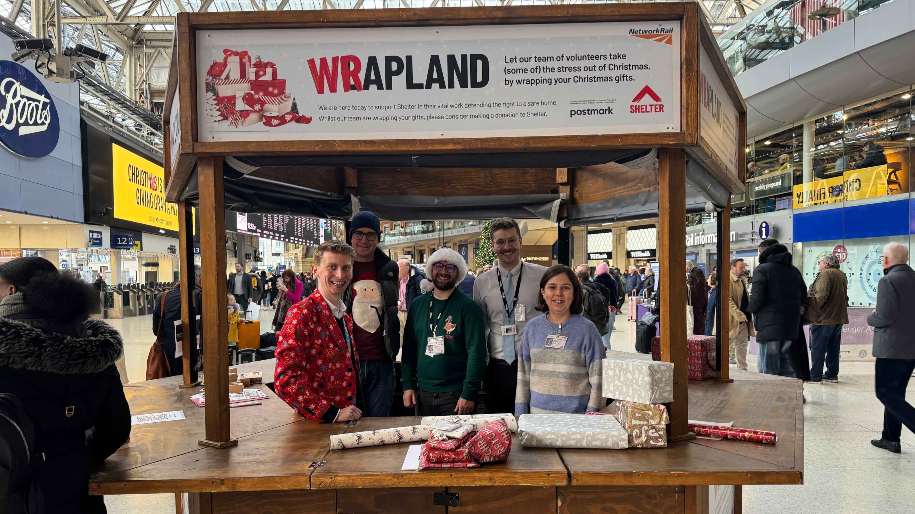 Network Rail staff volunteers will be on hand at London Waterloo this week to help Christmas shoppers wrap their presents and raise vital funds for housing and homeless charity Shelter.
