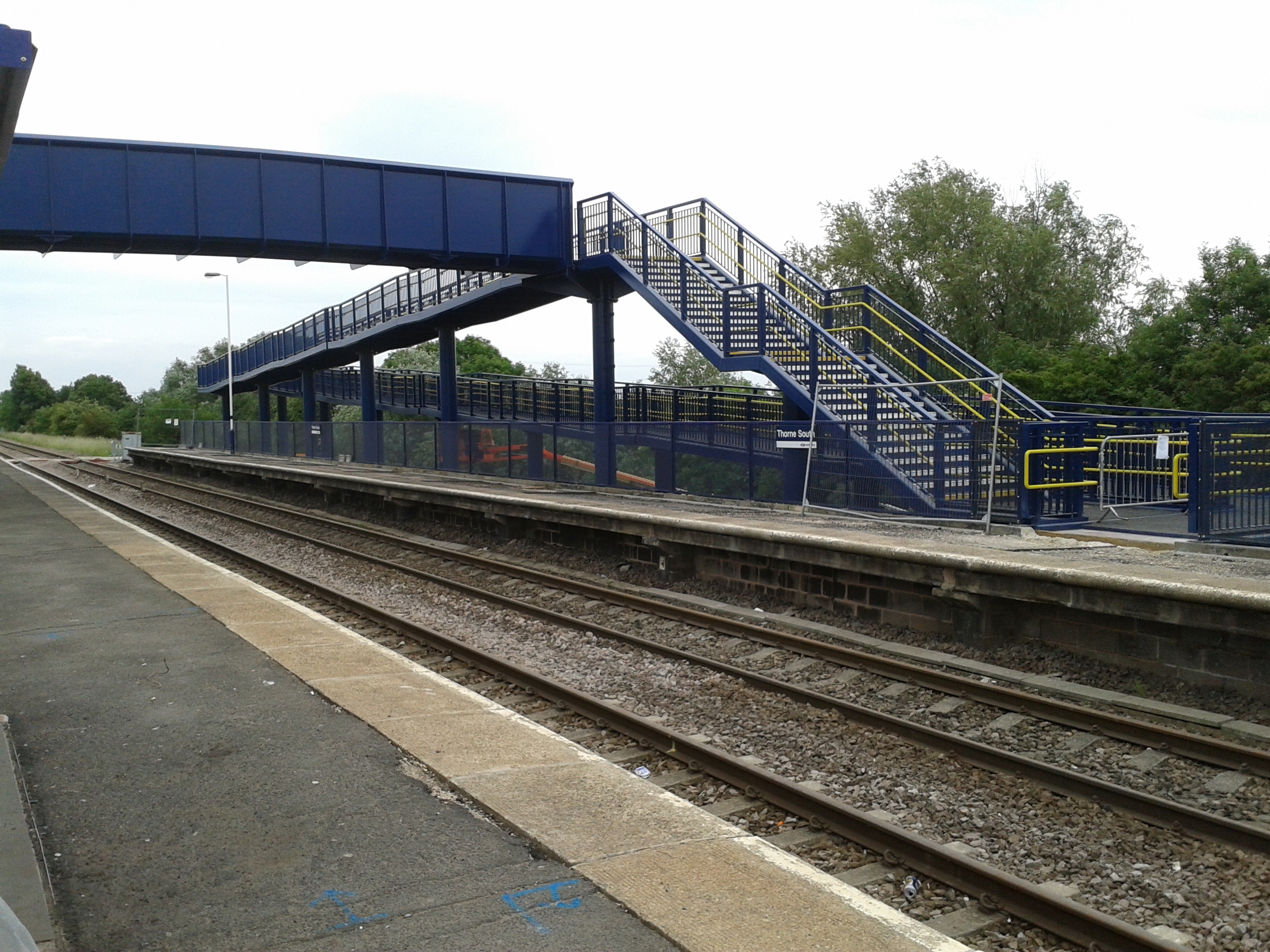 Passengers using Thorne South station will find a fully accessible footbridge linking the platforms when the line reopens to rail services on 8 July. A temporary stepped structure which was installed in January to replace a level crossing has been replaced with a purpose-built bridge which has both steps and ramps.