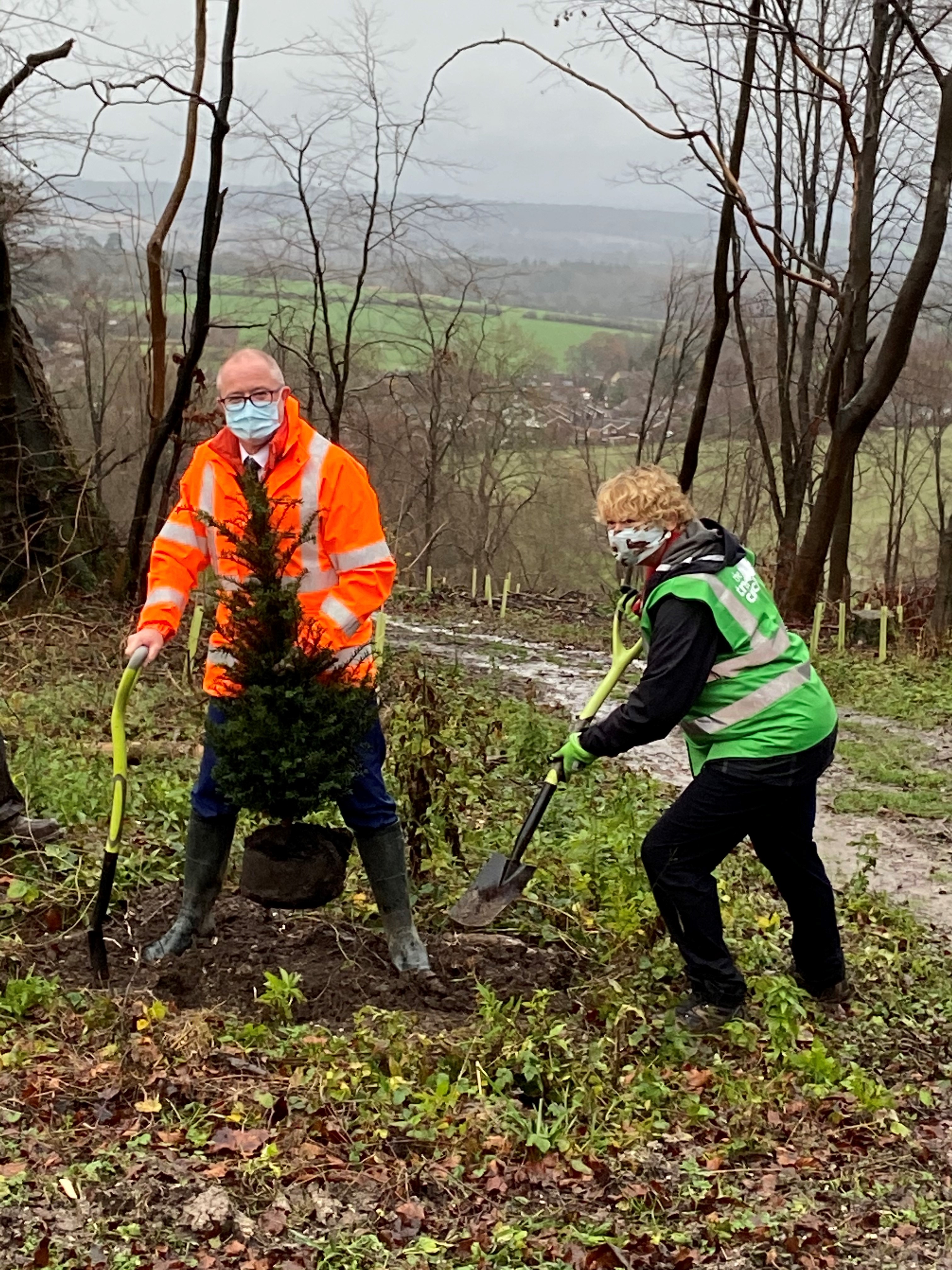 Andrew Haines launched the planting projects in West Sussex during National Tree Week, joined by CEO of The Tree Council Sara Lom and parish council chair Andrew Shaxton. He planted the first of 4,290 trees to restore a South Downs woodland that had been decimated by dieback. The disease had infected almost a third of the trees in the wood, meaning they had to be taken down to remove the danger to walkers and drivers.