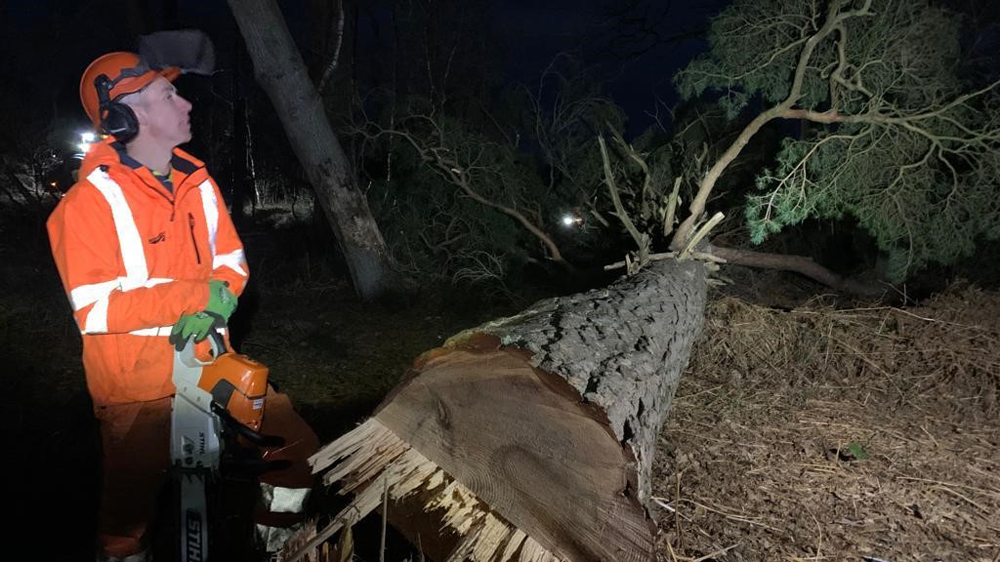 Storm Corrie 90mph gales bring down 100ft tree beside West Coast main line
