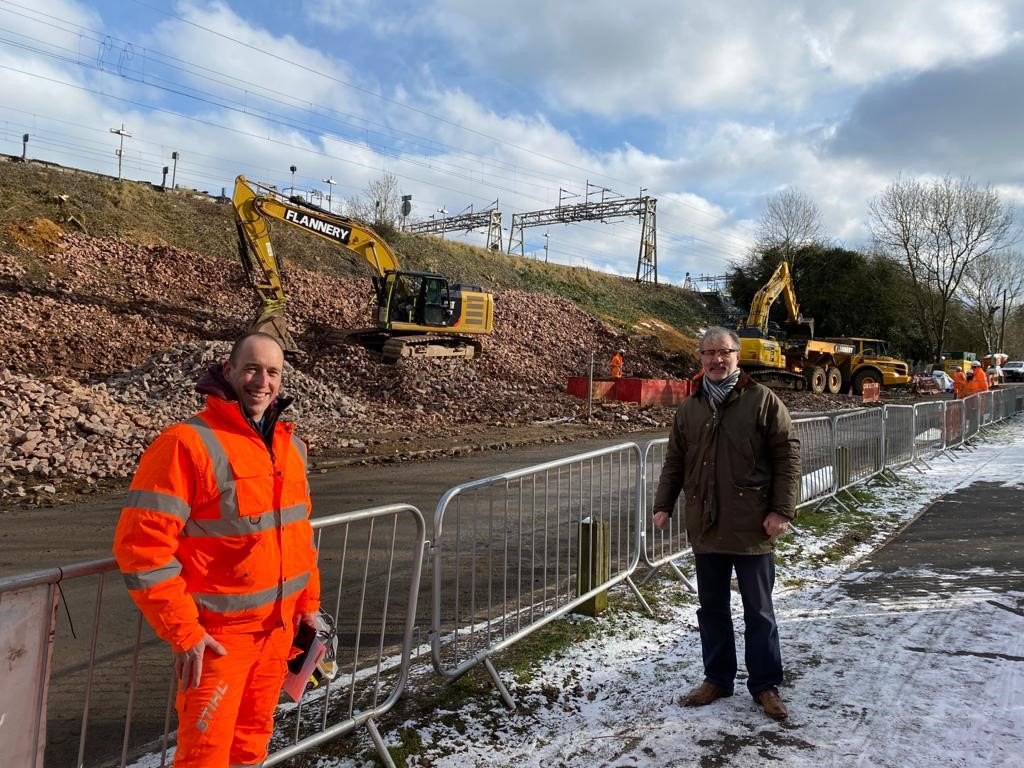 He said: “As someone who regularly uses the railway to travel between Rugby and London, I was keen to visit the site of the landslip and see for myself the progress being made to resolve this issue. It’s very impressive to see how swiftly Network Rail’s team have been able to restore the embankment, especially in the very challenging weather conditions of recent days.