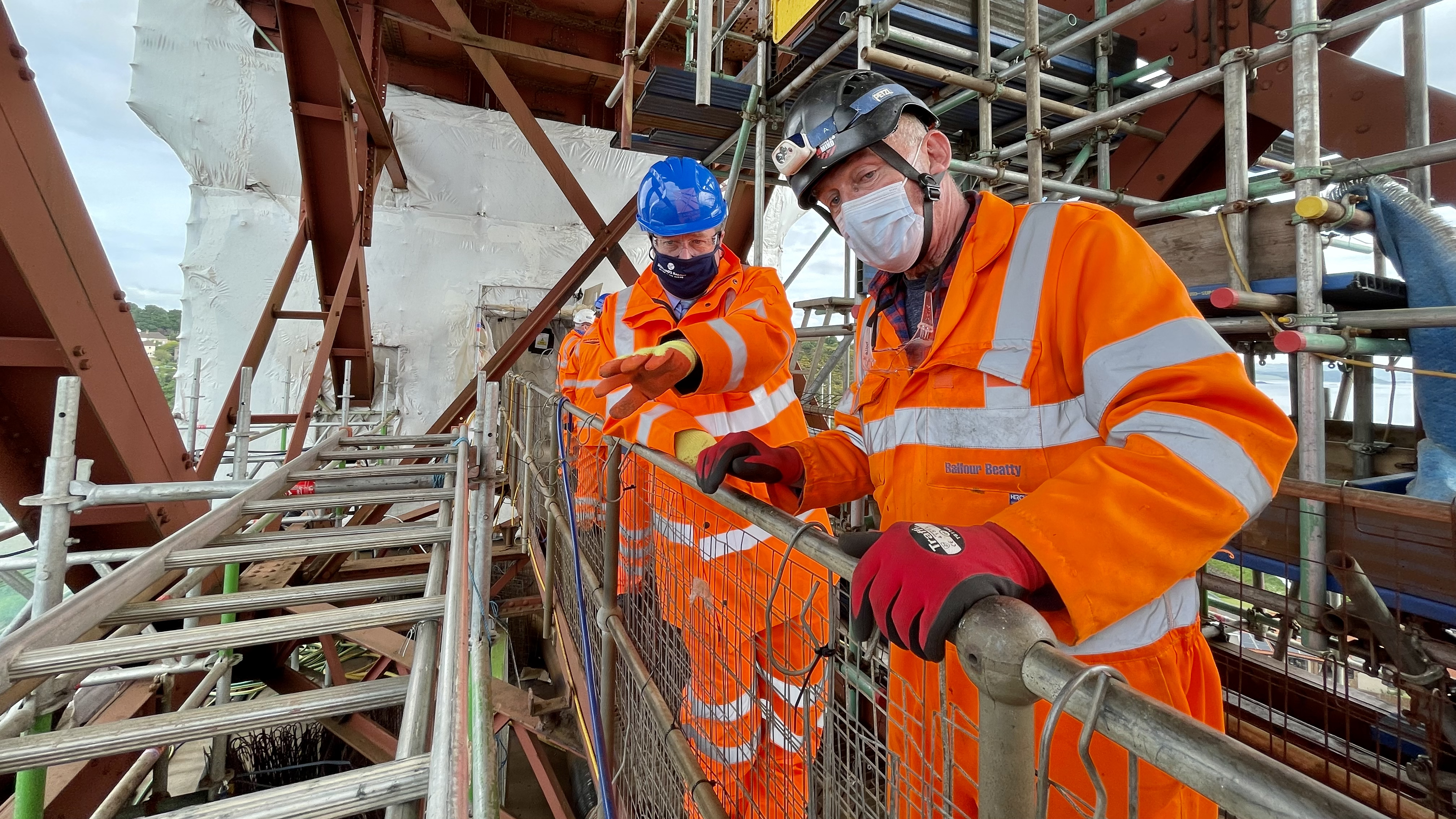 The project started in February 2021 and Mr Dey had the opportunity to see first-hand the progress being made when he was taken up to the encapsulated zone where contractor Balfour Beatty is repainting and refurbishing the span.