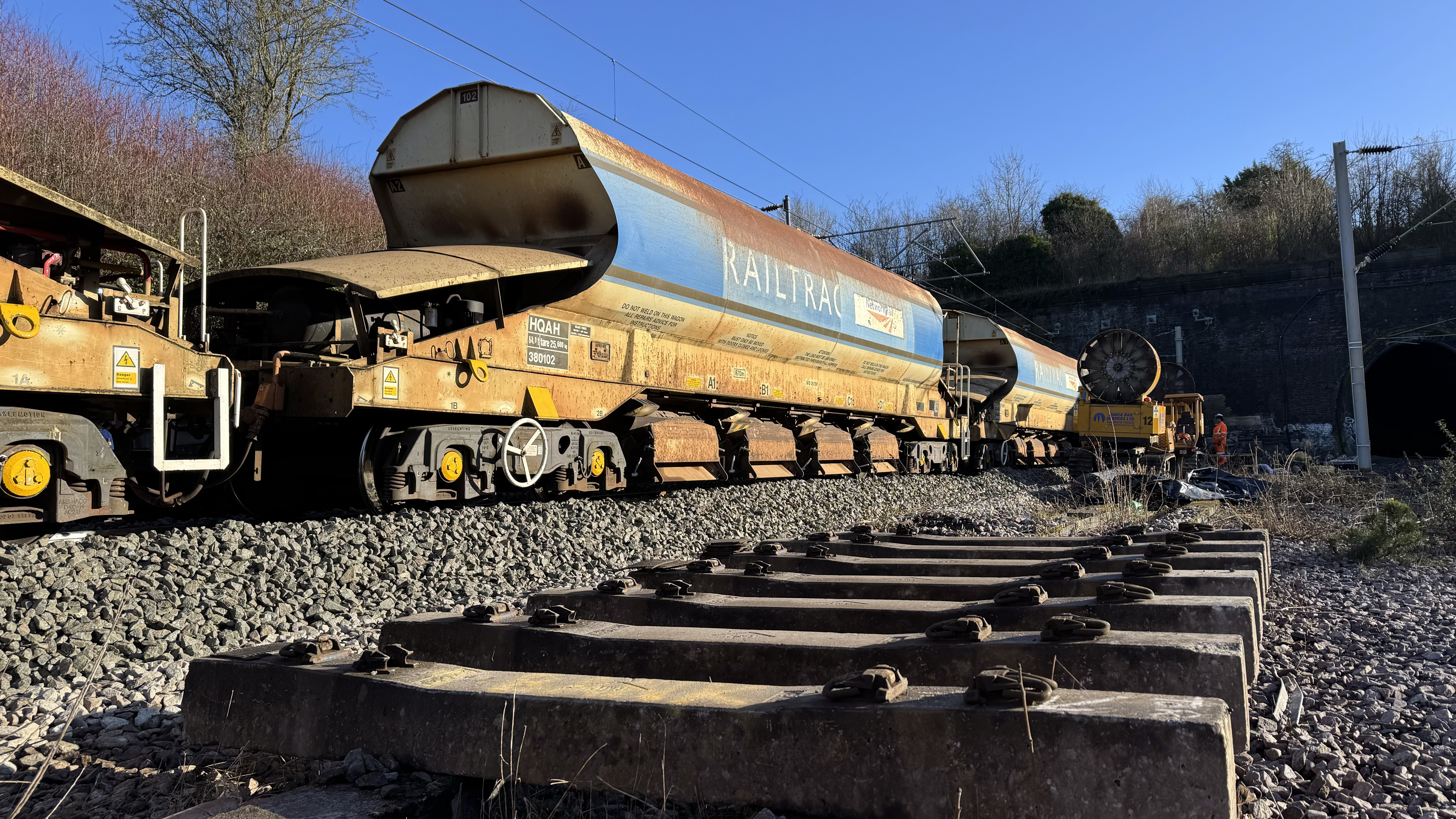 - Then bulldozers pushed old ballast spoil out each end of the tunnel and taken away by engineering trains