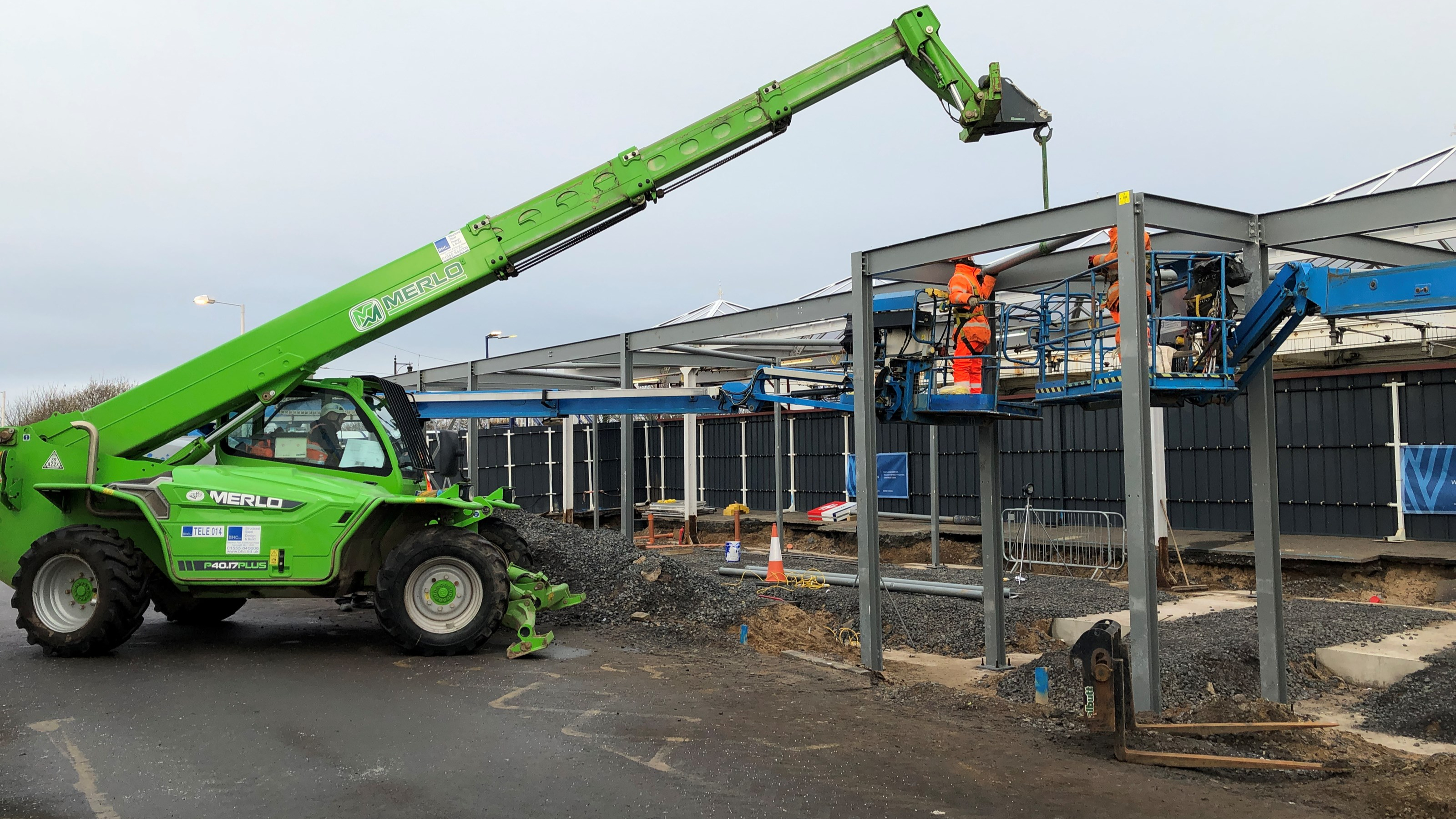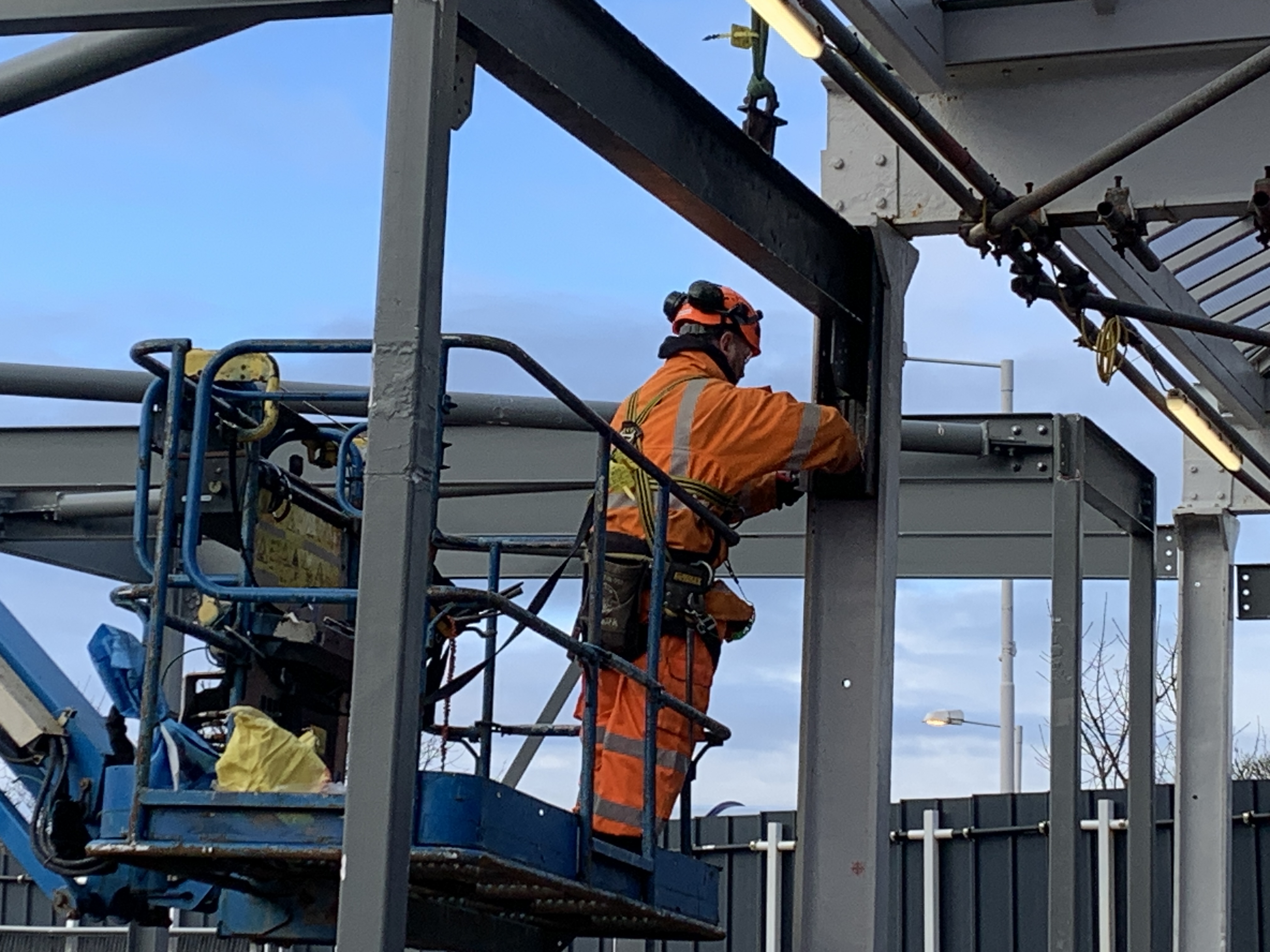This was lifted into position by a tele-handler and bolted in place by operatives working from mobile elevating work platforms (MEWPs).