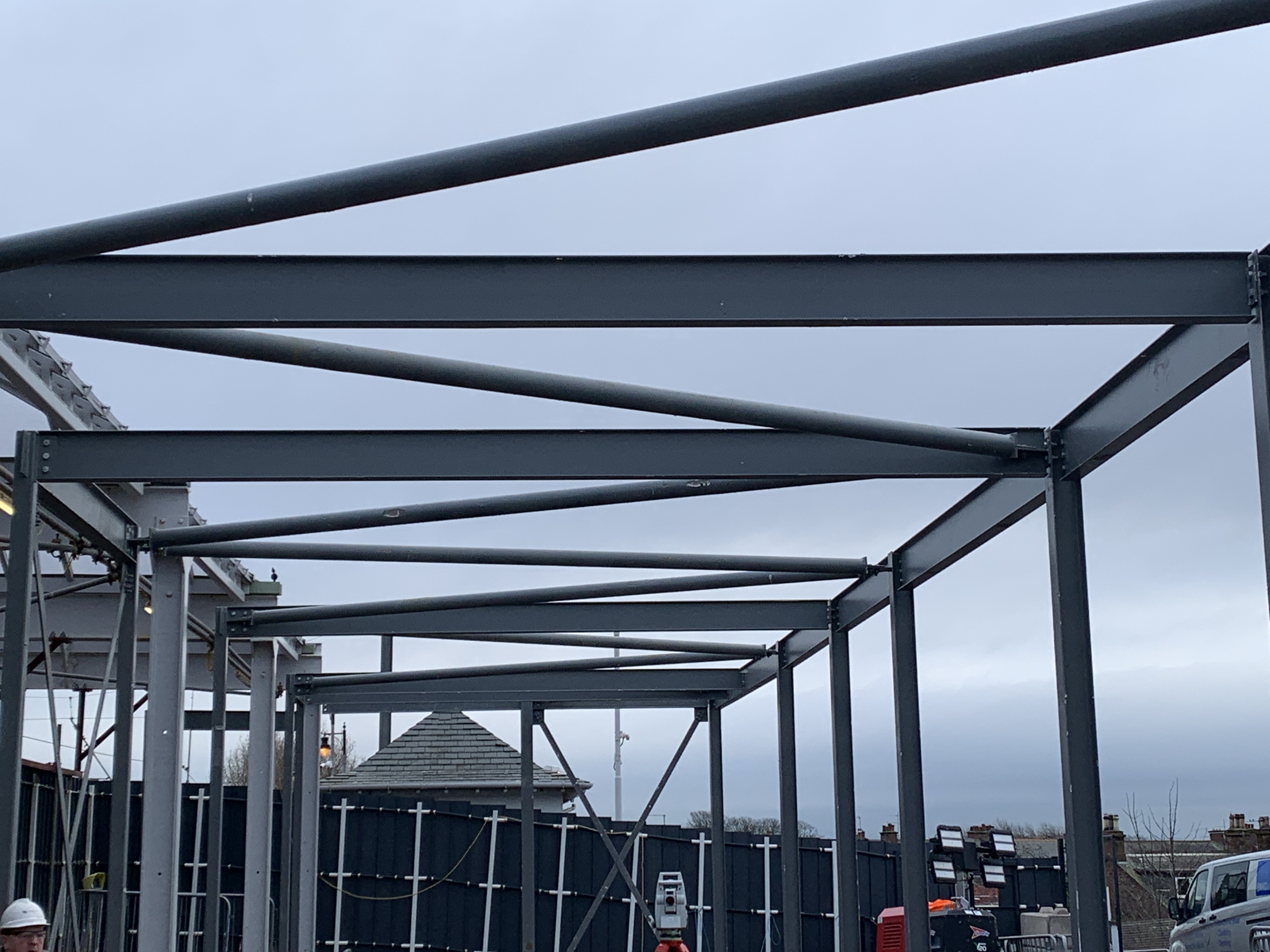 Engineers have installed the steel which forms the framework of the structure and creates the footprint for the new building at the station in South Ayrshire.