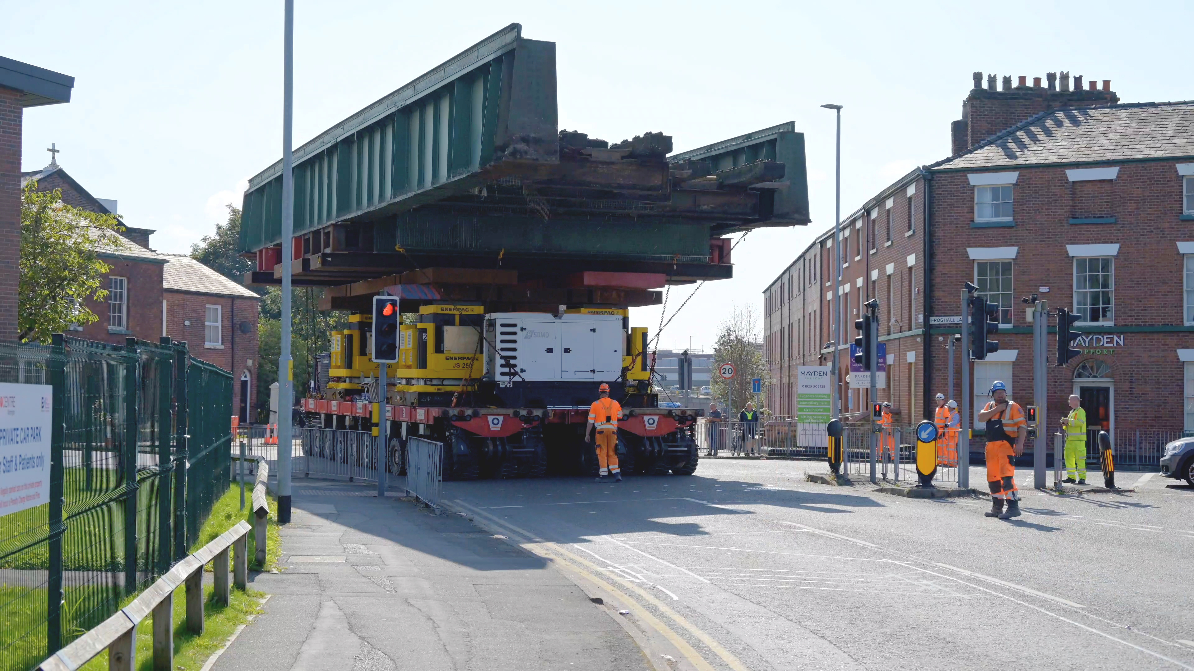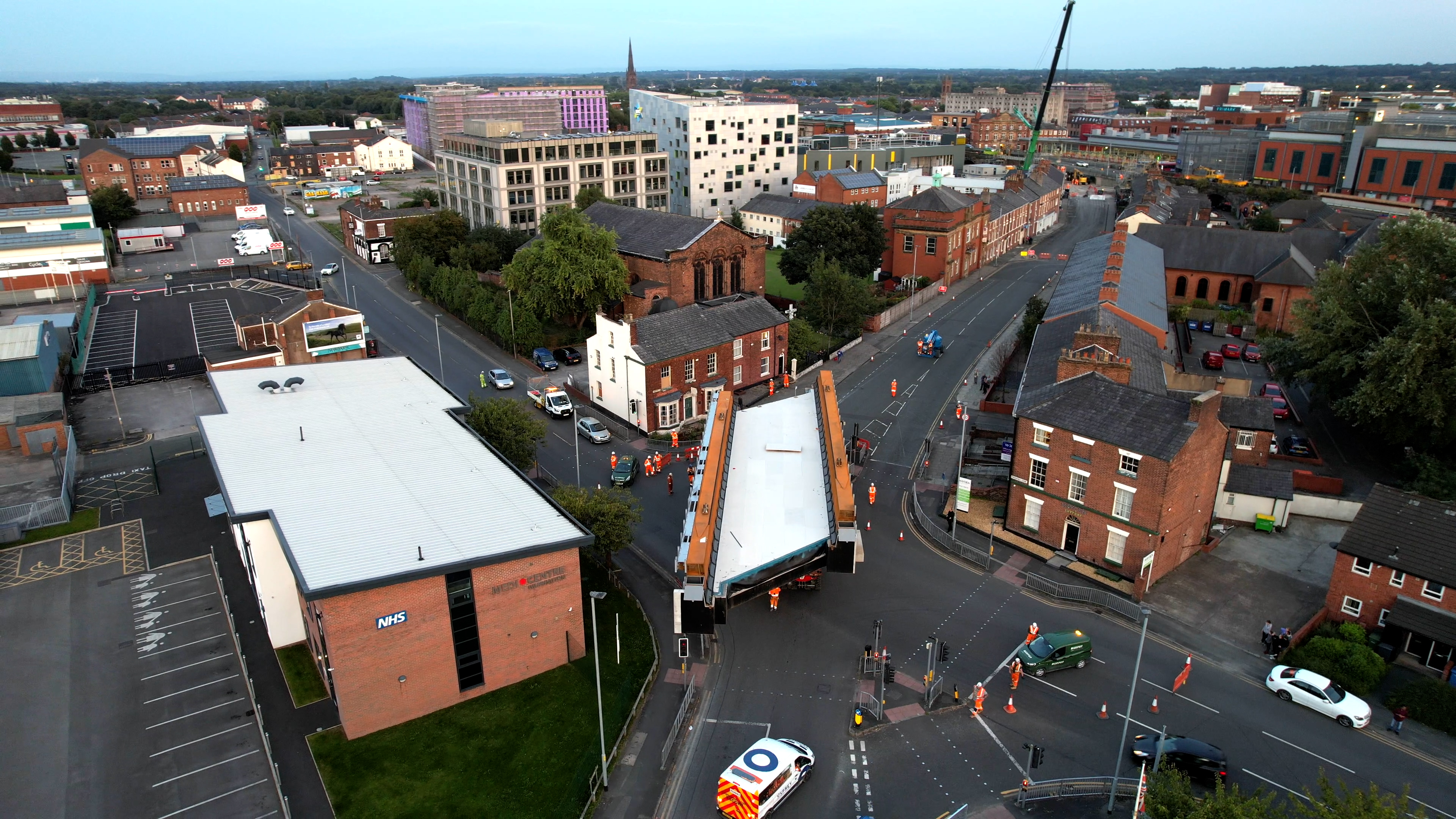 The multi-angle footage shows the former Bewsey Street bridge being removed at Warrington Central station and driven through the town’s streets over the August bank holiday weekend.