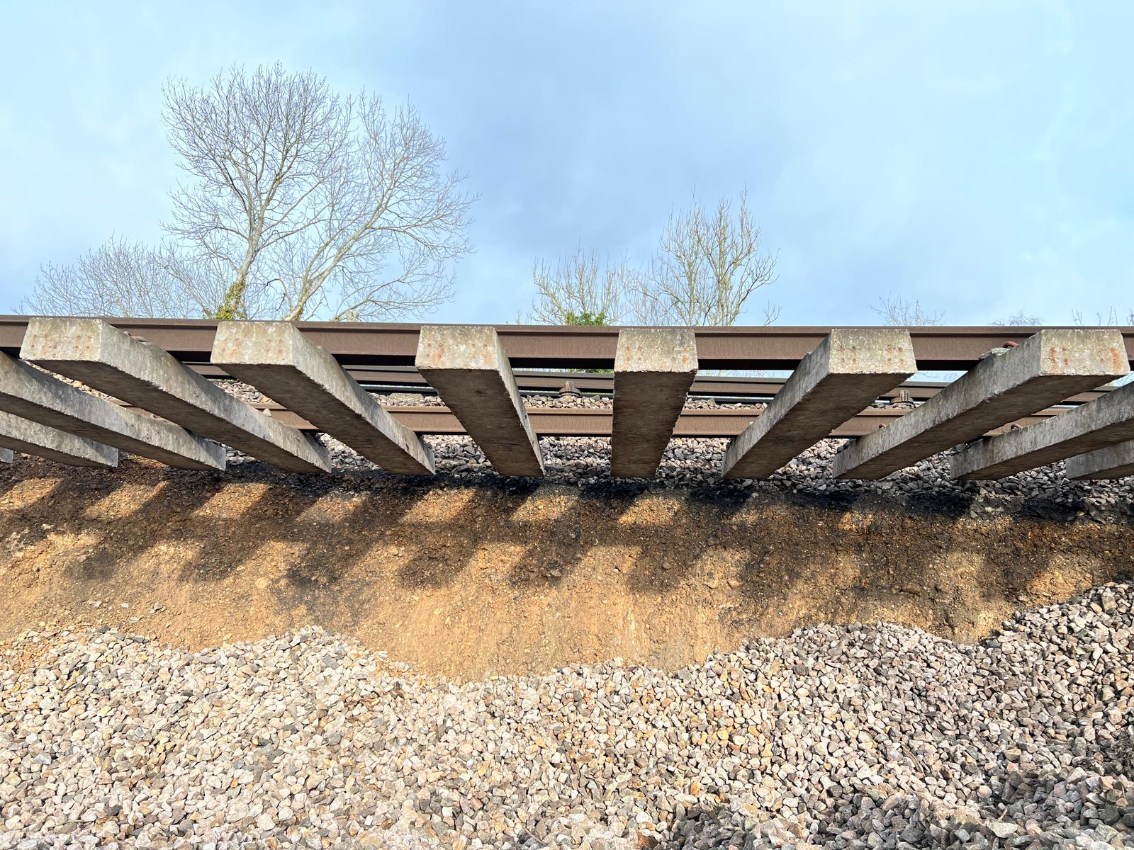 The embankment is made of mixture of London Clay and other local soils, saturated after days of heavy rain and a very wet winter. The slip happened when the soil gave way along a 44 metre section of 10m high embankment, sliding out from underneath the tracks, in what engineers call a “rotational failure”.