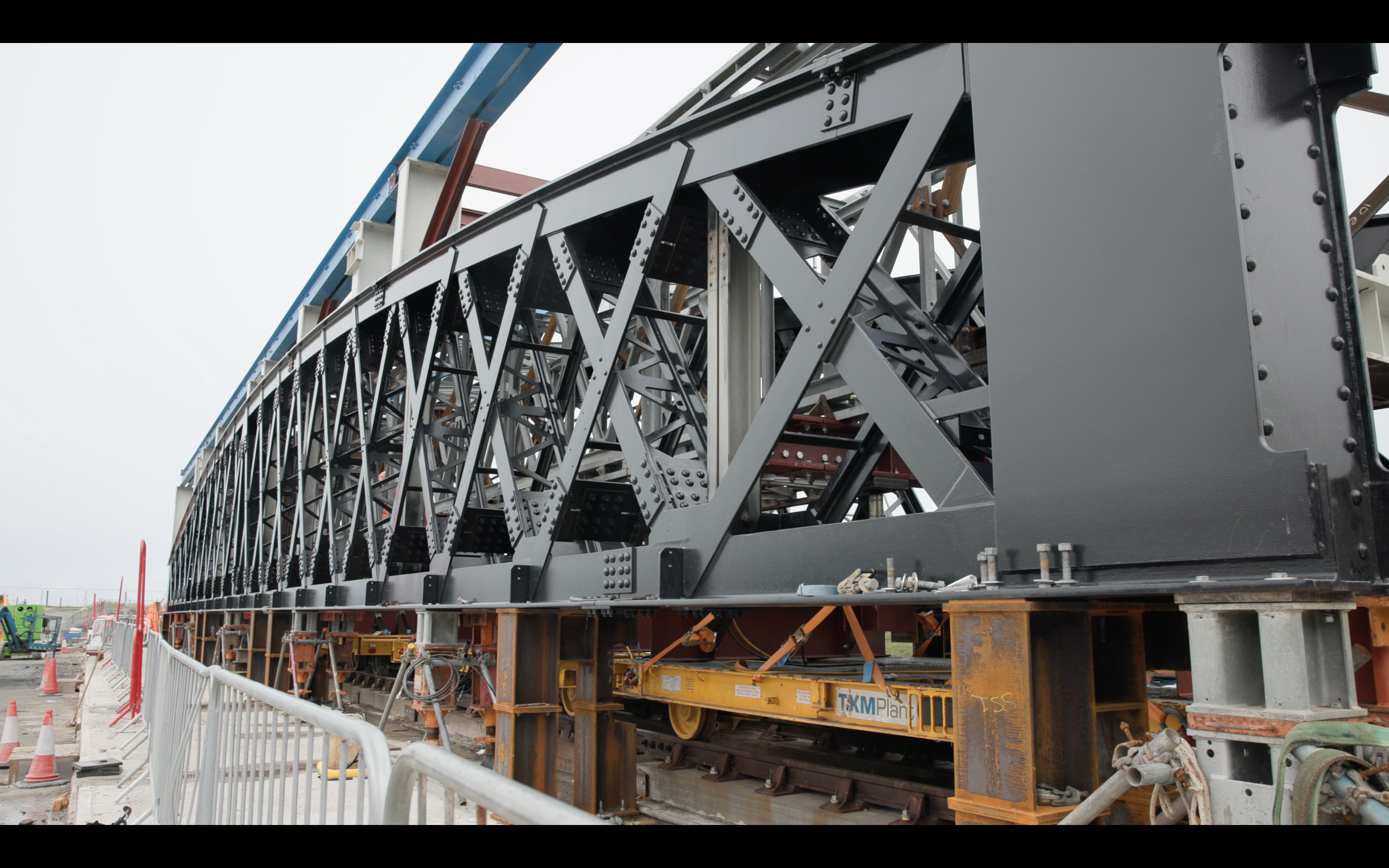 With one newly fabricated span weighing the same as an average adult blue whale, teams had to utilise more than 16 jacks - ranging from 20 to 100 tonnes capacity - as well as six rail trailers to carry out the technical move.
