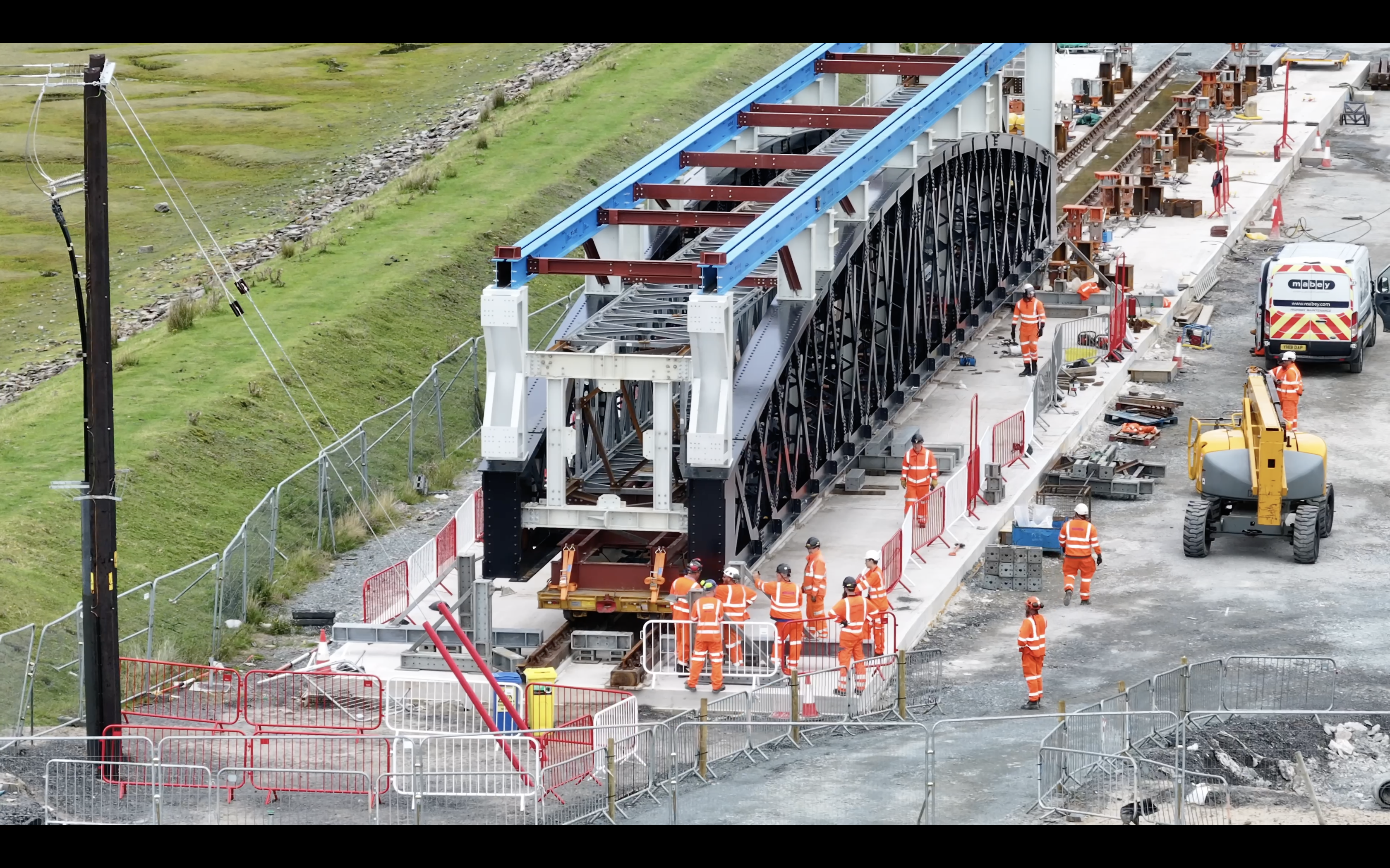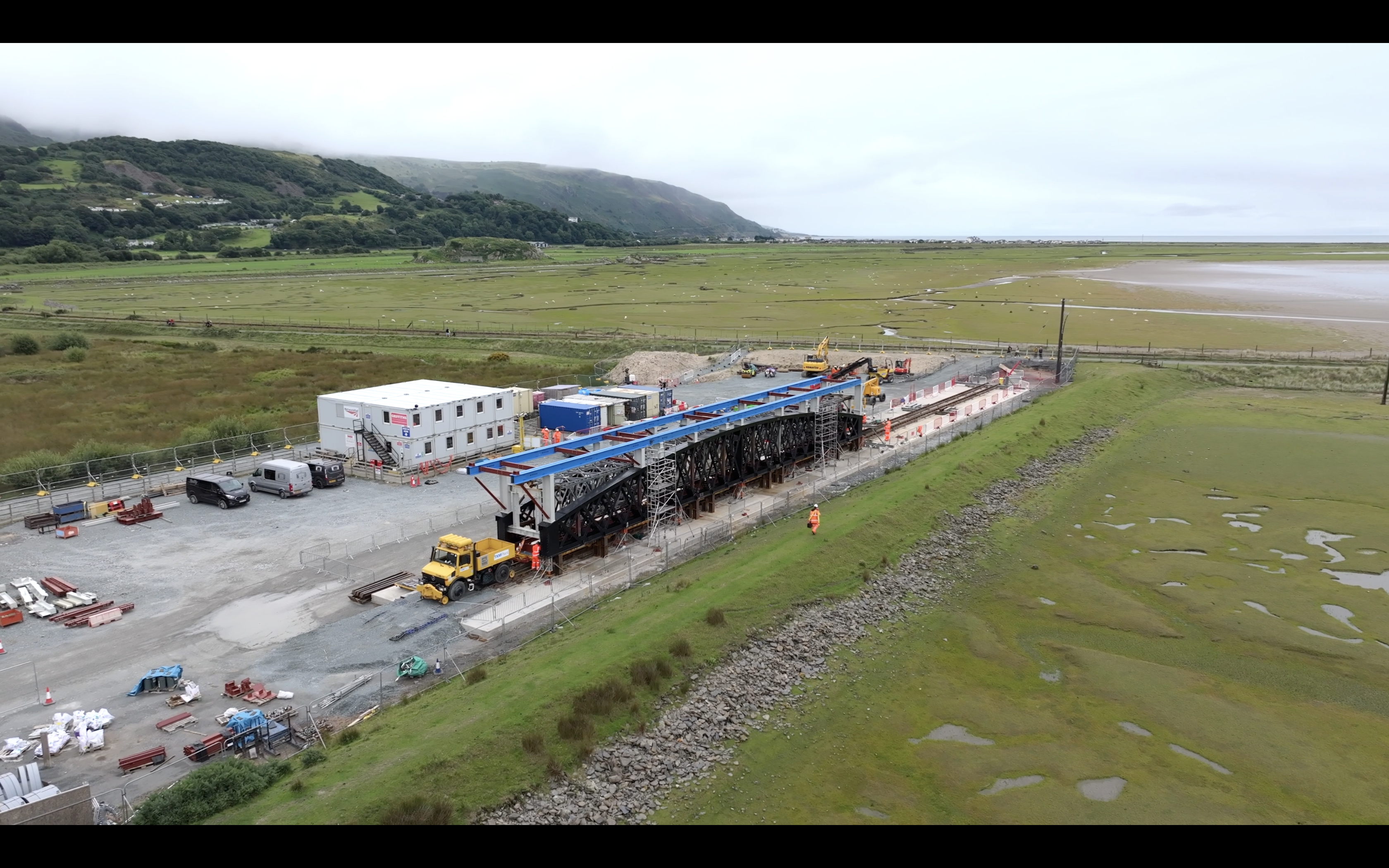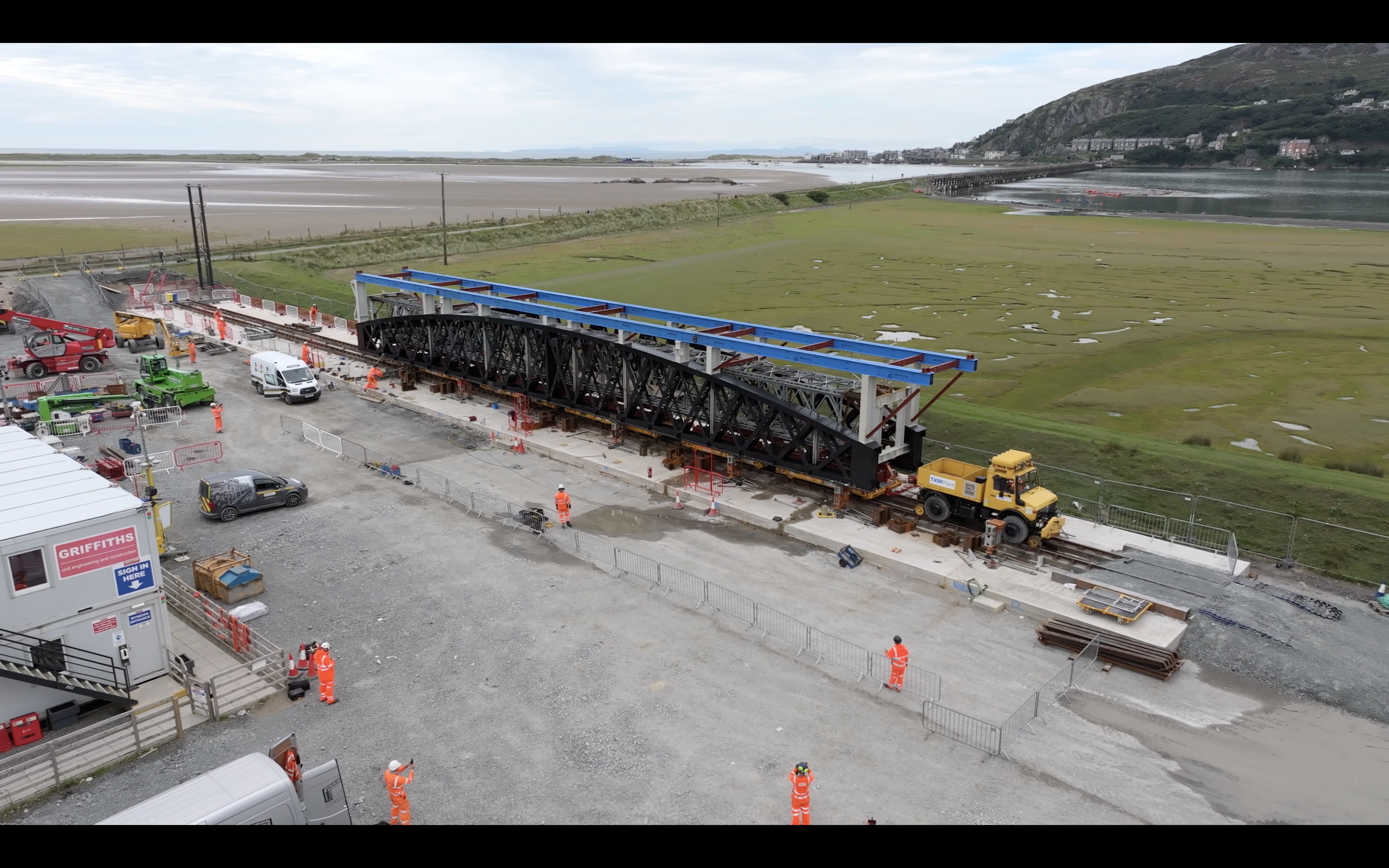 Now that the trial is complete, Network Rail and Alun Griffiths have begun preparing for the final move, where two metallic spans will be lifted onto the viaduct and transported via rail, to its new home, on the northern end of the bridge. This unique and intricate process will be done over two days with the finer details being completed during 13-week closure. When in position, the old span will be taken apart, piece by piece, onto a pontoon in the Mawddach Estuary.