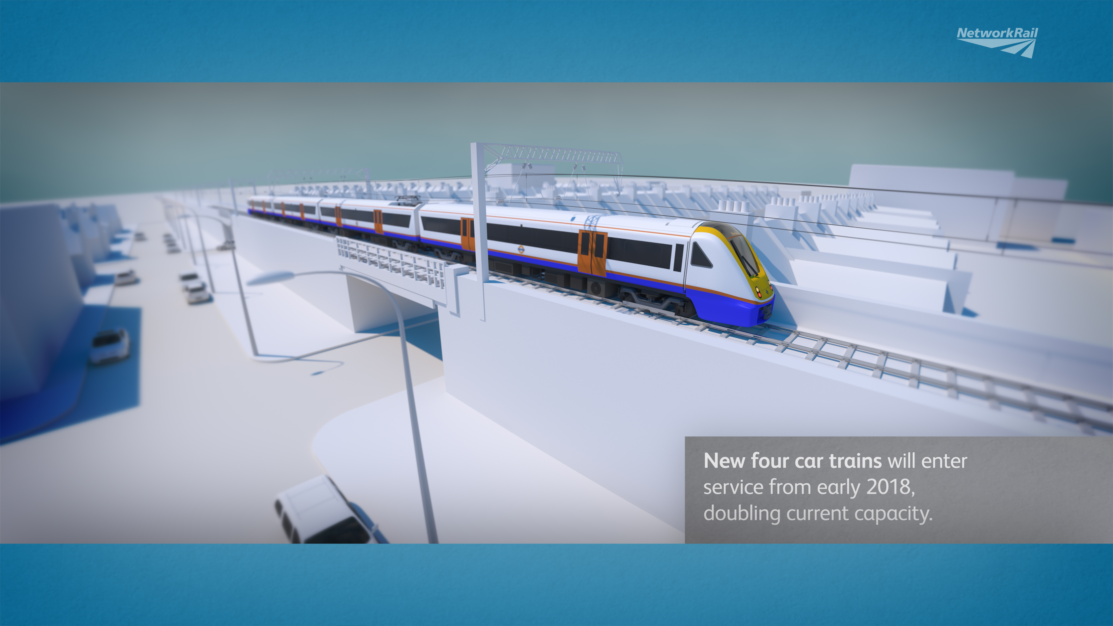 Network Rail is delivering the project, which is being funded by the Department for Transport and Transport for London (TfL). The project will see TfL introduce new four-carriage electric trains to replace the existing two-carriage diesel trains from January 2018, helping to meet growing passenger demand.