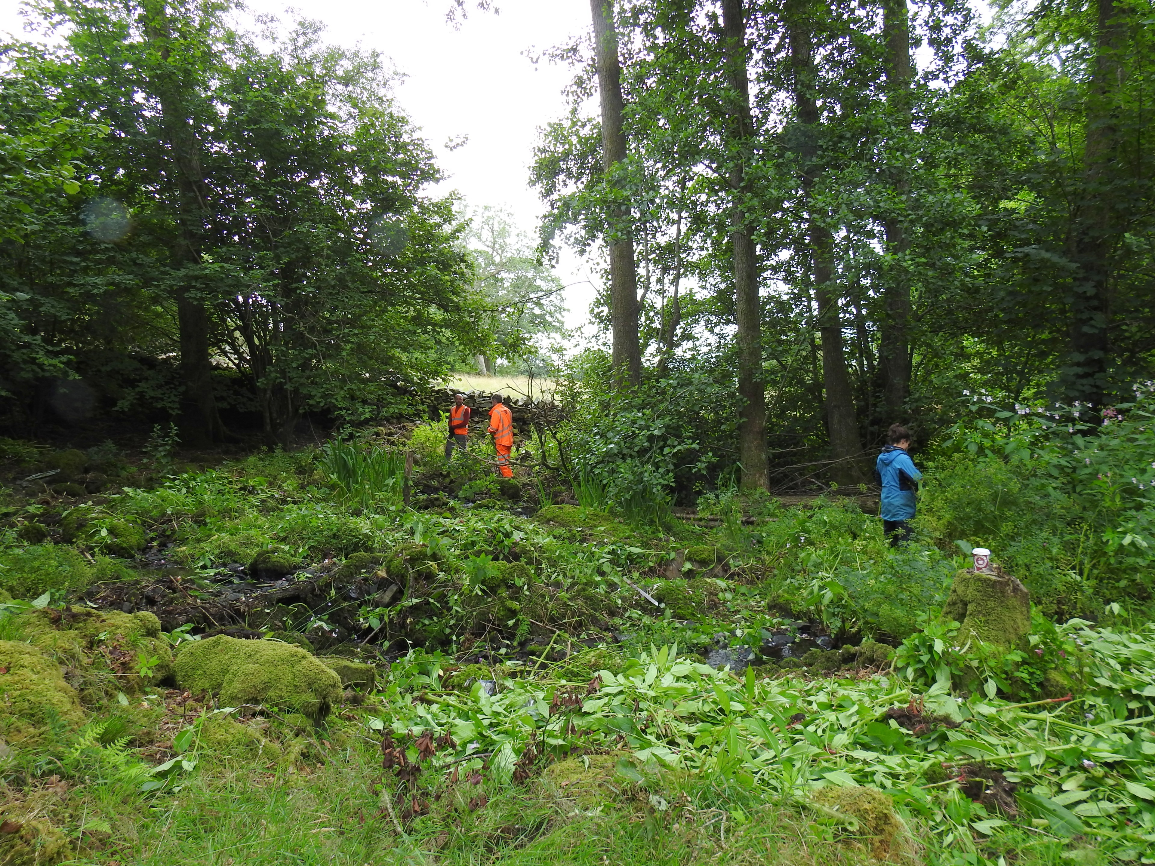 SCRT built the natural defences by stacking logs and building dams to reduce flooding risk. To monitor the project’s success, CCTV was installed. The infestation of Himalayan balsam meant the view of the CCTV was obscured.