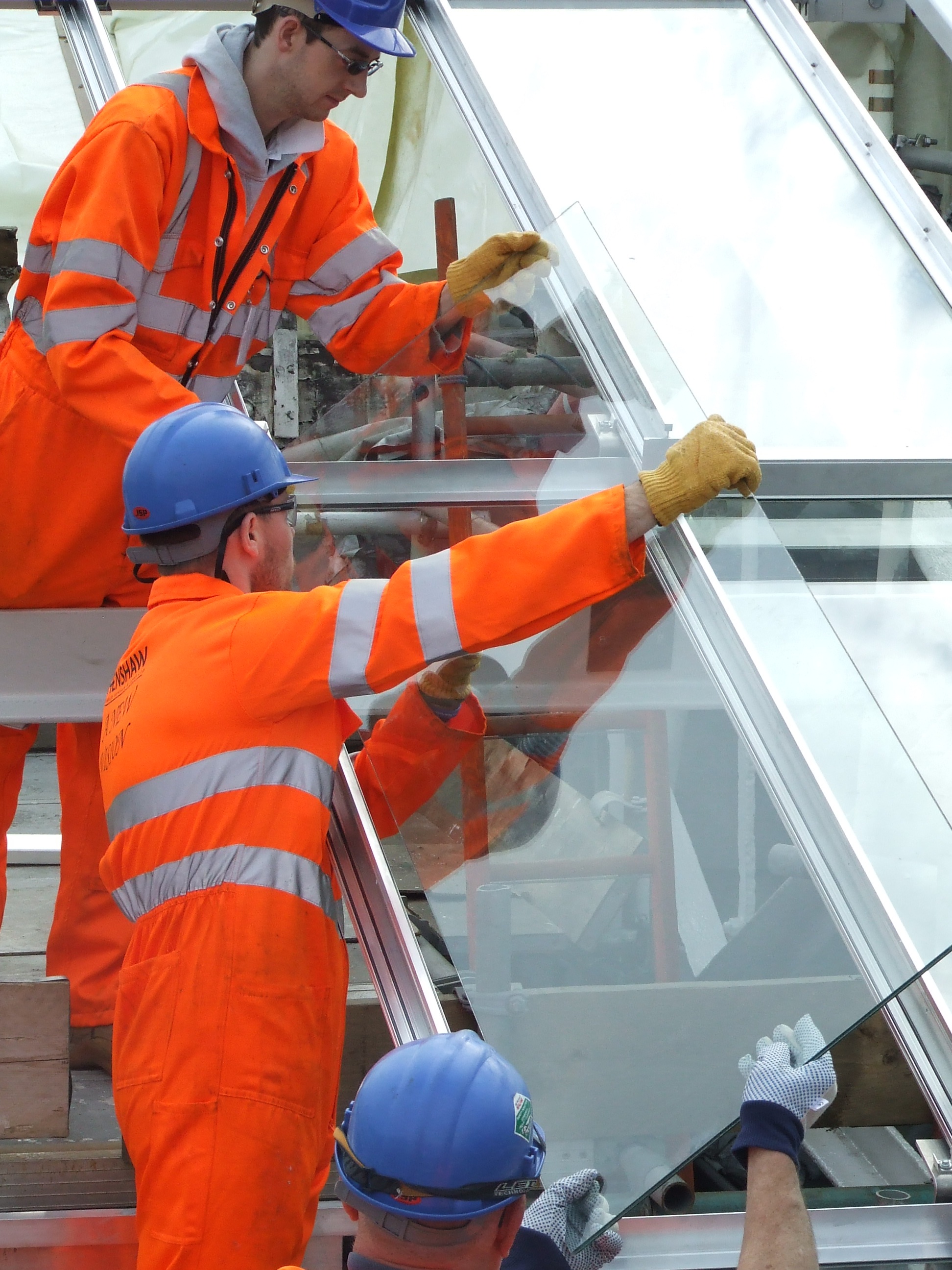 One year on from the start of the project, Network Rail has installed the first of 28,000 panes of glass into Waverley Station’s new roof.