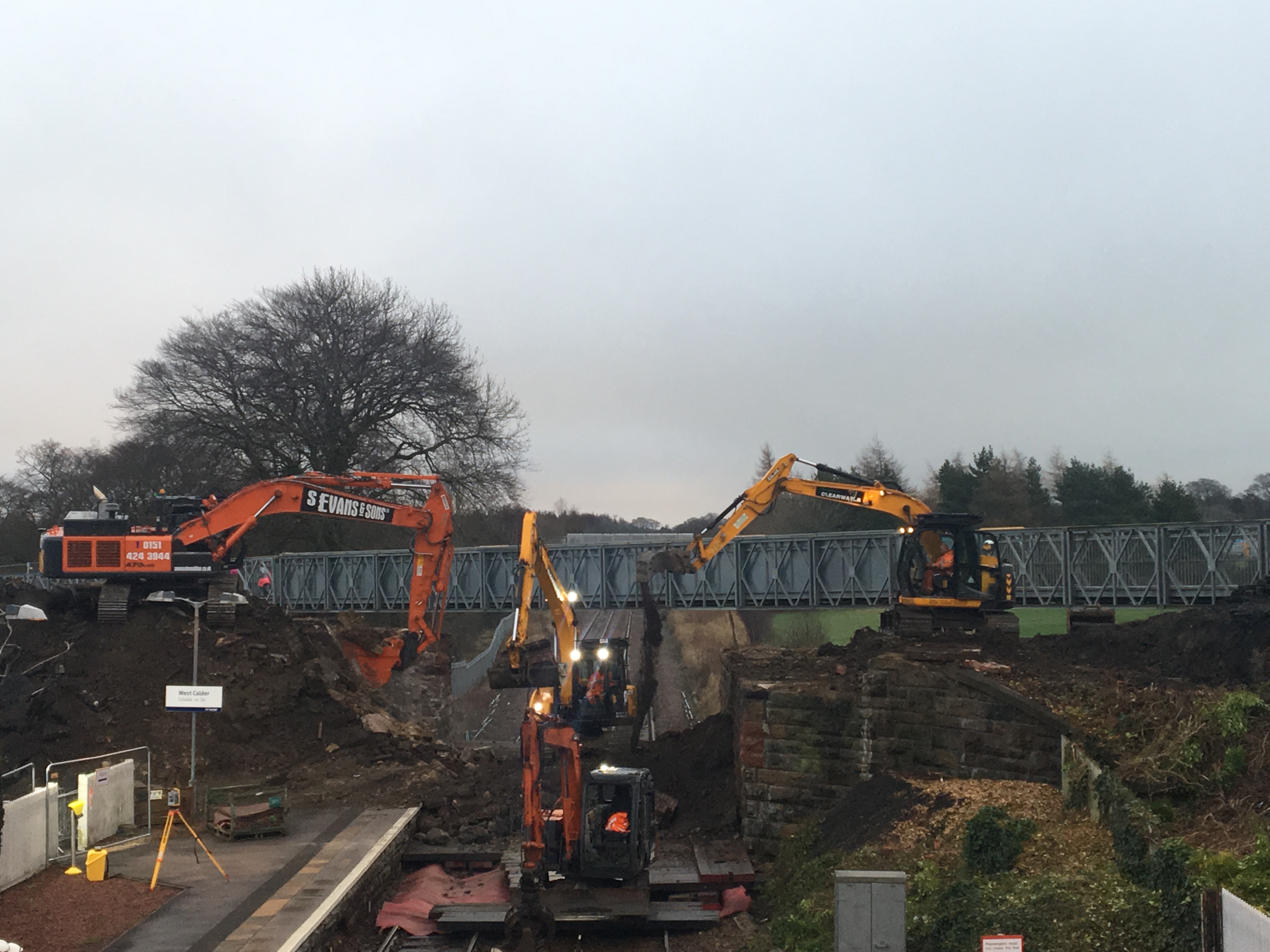Network Rail engineers successfully demolished and took the first steps to reconstruct the bridge over the railway on the A71 in West Calder over the weekend.