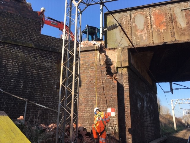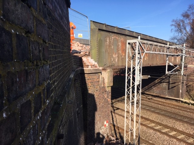 Brickwork on the Worston Lane bridge, north of Stafford, was badly damaged yesterday (14 February).
