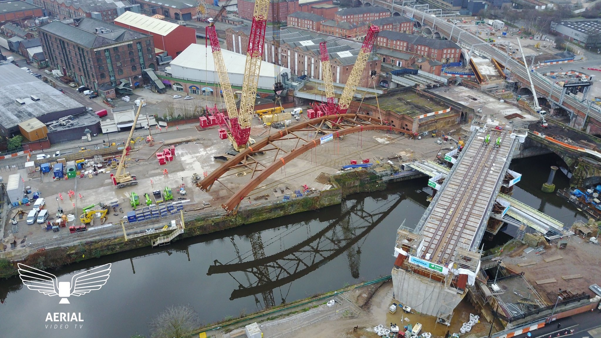 Britain’s first asymmetrical network arch railway bridge was dramatically installed today - a major landmark in a Network Rail scheme that, once complete, will bring transformative benefits for train customers across the North of England.
