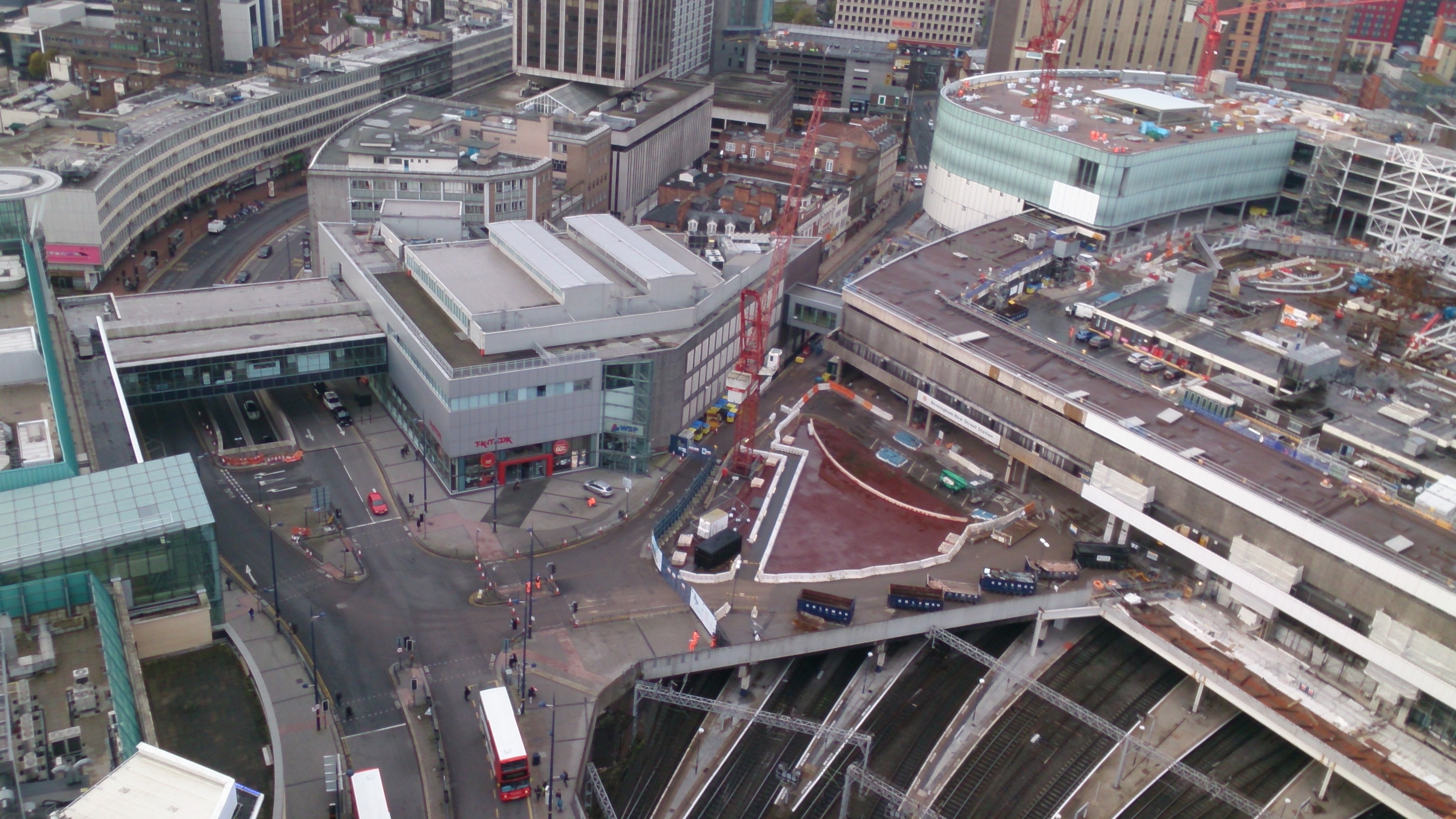 The station will remain open throughout the redevelopment. The first half of the new station concourse opened to passengers in April 2013. Work has now started to redevelop the old station and Pallasades shopping centre above into Grand Central. The project completes in 2015.