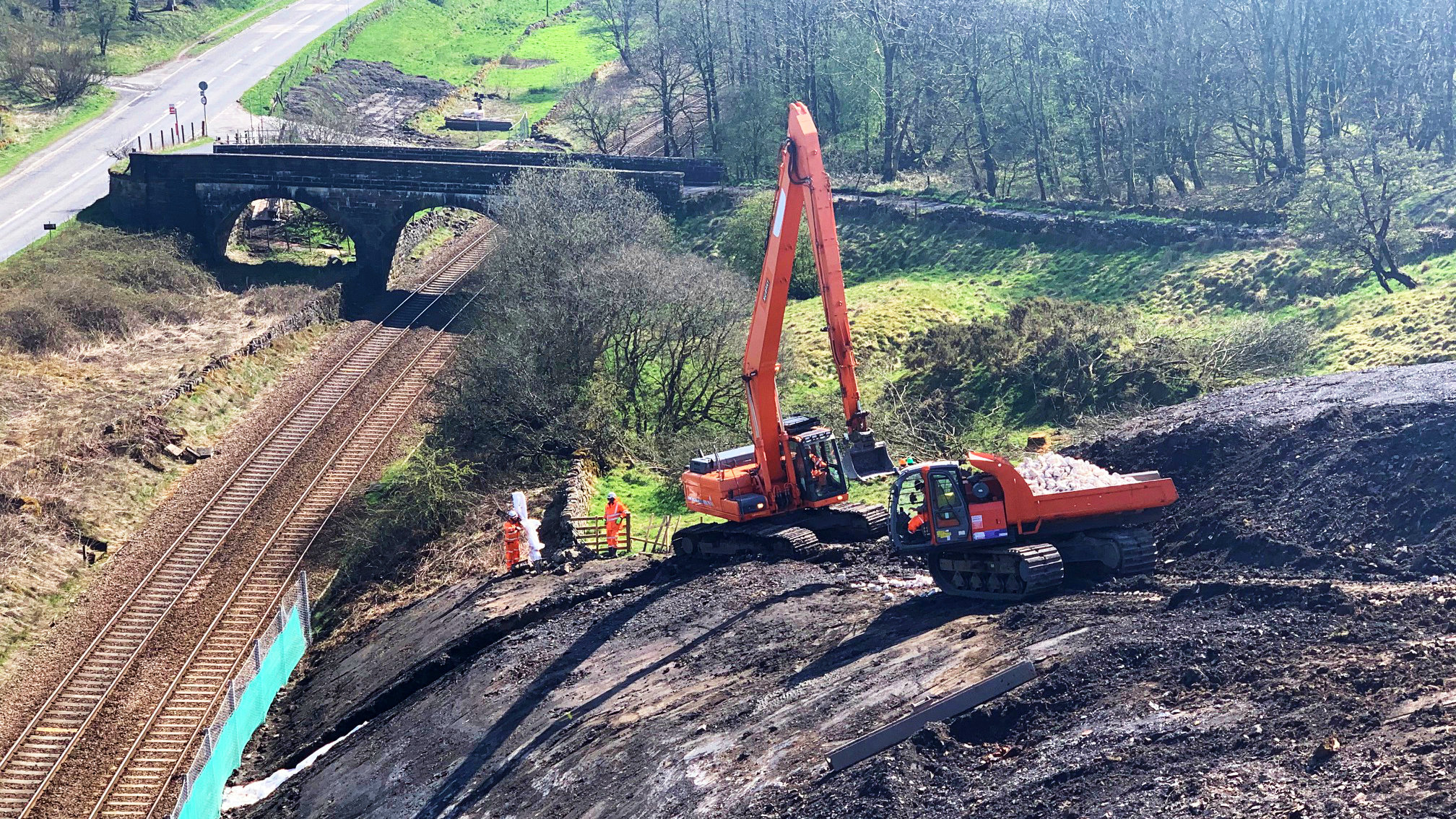 The earth embankments are being made less steep and the ground made more secure in two locations near Chapel-en-le-Frith.