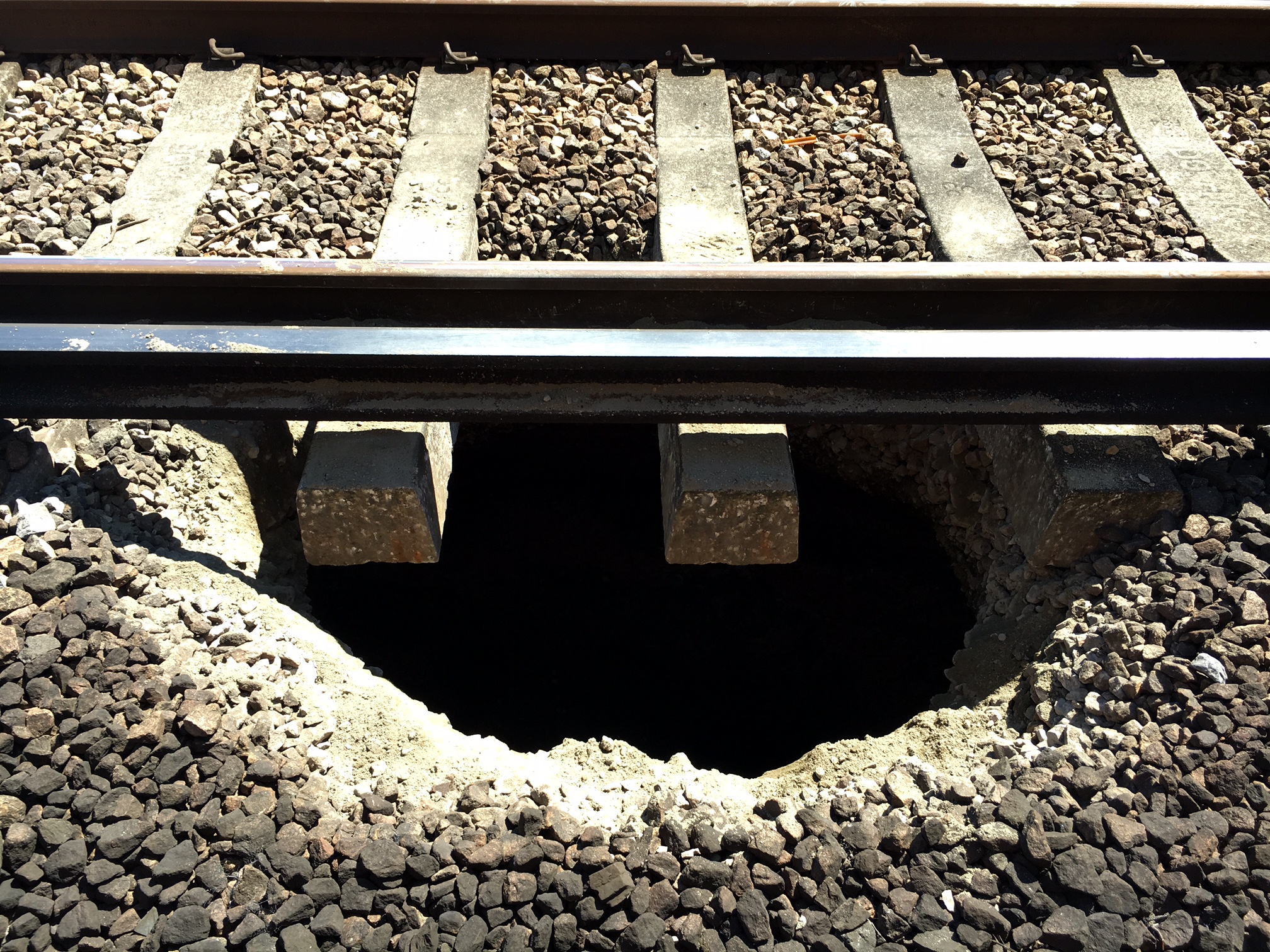 Engineers are putting dry concrete into the hole, which will form a base where wet concrete will be poured on top. When the concrete has set, around 50 tonnes of ballast will be poured into the hole with the aim of opening the railway tomorrow. The time required for the concrete to set means the work will take the remainder of the day and evening.
