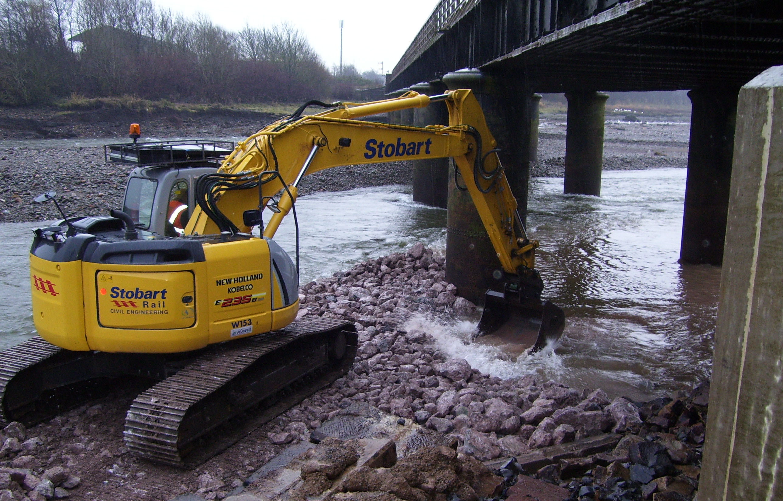Nearly 2,500 tonnes of stone of various sizes has been deposited in the river round the piers supporting the viaduct, to act as protection against debris and fast-flowing water damage.